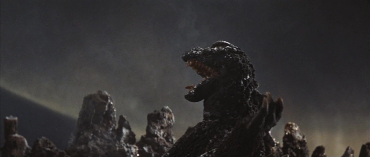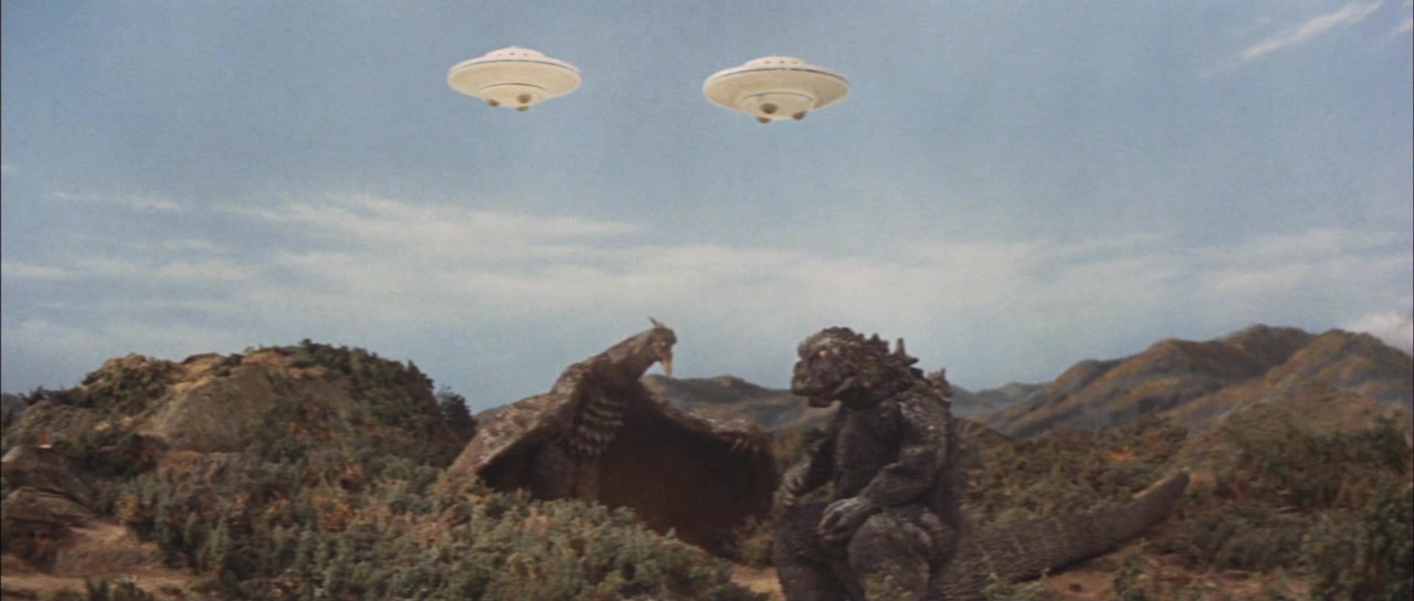 On notera la présence d’un Américain dans un rôle important, avec la présence donc de Nick Adams en astronaute, qui sera intégralement doublé en Japonais. Sa présence ne changera rien à la qualité finale du film, ni à son accueil commercial, le film ne débarquant en Amérique que 5 ans après sa sortie au Japon. Entre science fiction kitch, effets un peu risibles, moins de destructions et des Kaijus peu utiles à l’histoire, on pourrait croire que Invasion Planète X est un très mauvais Kaiju Eiga. Dans le fond, oui, ce n’est pas totalement bon, mais le film bénéficie encore de quelques arguments, se laisse plutôt bien suivre, sait se faire rythmé, et Honda à la mise en scène livre encore une copie propre malgré un budget un peu plus limité. Ce qui explique d’ailleurs des effets moins nombreux et parfois moins travaillés. Il l’aurait lui-même avoué dans une interview, disant clairement qu’à cette période, la production des films Godzilla manquait de temps et d’argent, et que la production recyclait parfois des plans des anciens films. Un cercle vicieux d’après lui, puisque les fans remarquaient cet élément et se sentaient roulés, alors que la Toho pensait que le genre ne marchait plus et continuait de baisser les budgets. Invasion planète X avait sans doute trop d’ambitions pour lui au vu de son budget, entre ses extra-terrestres, ses voyages dans l’espace, ses trois monstres… Le spectacle plaira encore à l’amateur malgré la baisse de qualité, mais la fin pour Godzilla est bel et bien là !