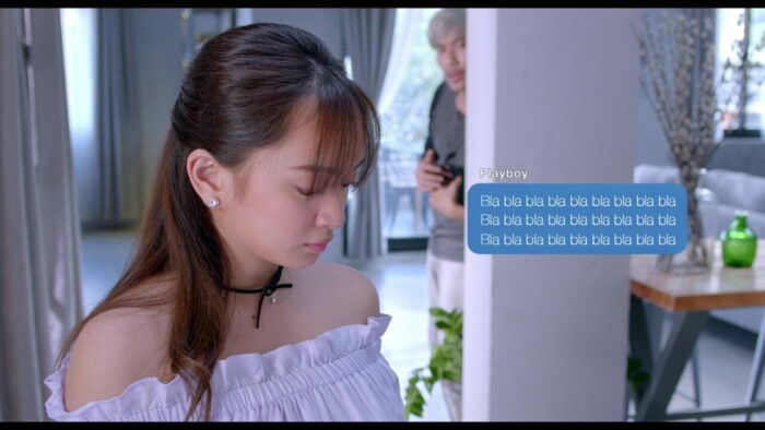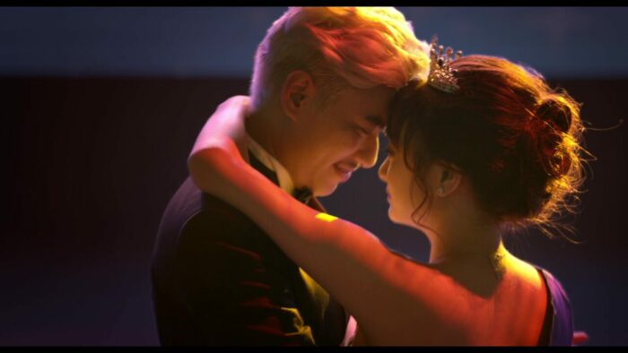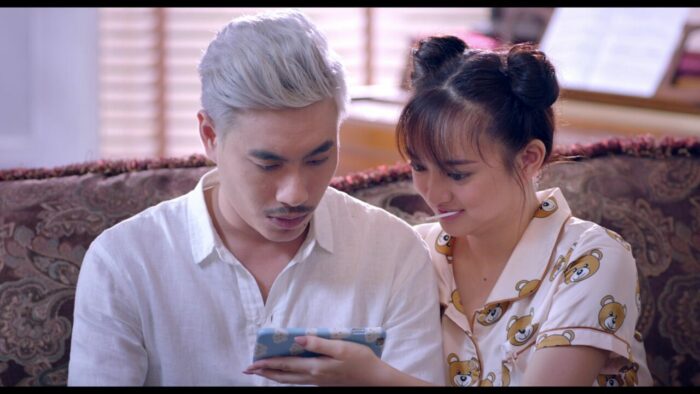 Oui, l’amour gagne. Hop, après la levée de boucliers, je crois qu’on aurait droit à une levée d’épées chauffées à blanc. Et vous savez quoi ? Et bien, faites donc, ce n’est que du cinéma, ce qui est à l’écran n’est pas nécessairement cautionné par l’équipe, car, et bien, c’est du CINEMA justement. Le jour où ce que l’on filme devra être validé moralement par l’ensemble de la population mondiale, et bien le cinéma n’existera plus. Jailbait donc, et bien, c’était fun. Léger, avec des gags qui font souvent mouche, un casting qui semble s’éclater et que l’amateur de cinéma Vietnamien connait. D’ailleurs, il est à noter que l’actrice Kaity Nguyễn semble beaucoup plus à l’aise dans le registre léger de la comédie, avec ce film ainsi que Blood Moon Party en 2020, que dans un registre plus sérieux et subtil tel que le thriller, car Girl from the Past, c’était sympathique, mais le manque de subtilité faisait que l’on grillait tous les twists à l’avance. Malgré une narration au départ décousue pour ouvrir le film directement sur un gag (le père pourchassant notre pauvre trentenaire dans la rue, en caleçon), le film nous présente hyper rapidement le personnage de Linh comme une jeune femme de 17 ans manipulatrice, et prête à tout pour s’en sortir. Même si l’on peut comprendre aisément son envie de se venger de son ex, elle embarque un inconnu, qui n’a rien à voir avec cette histoire, dans sa vengeance personnelle, mettant sa vie personnelle et professionnelle en danger. Car la jeune femme, qui a les moyens de le faire chuter avec une vidéo compromettante, a de la suite dans les idées, et un planning parfaitement établis. Le playboy devra donc s’afficher en public avec la jeune femme, aller la chercher en voiture après les cours, passer tout son temps libre avec elle, et forcément, l’accompagner au bal de fin d’années.