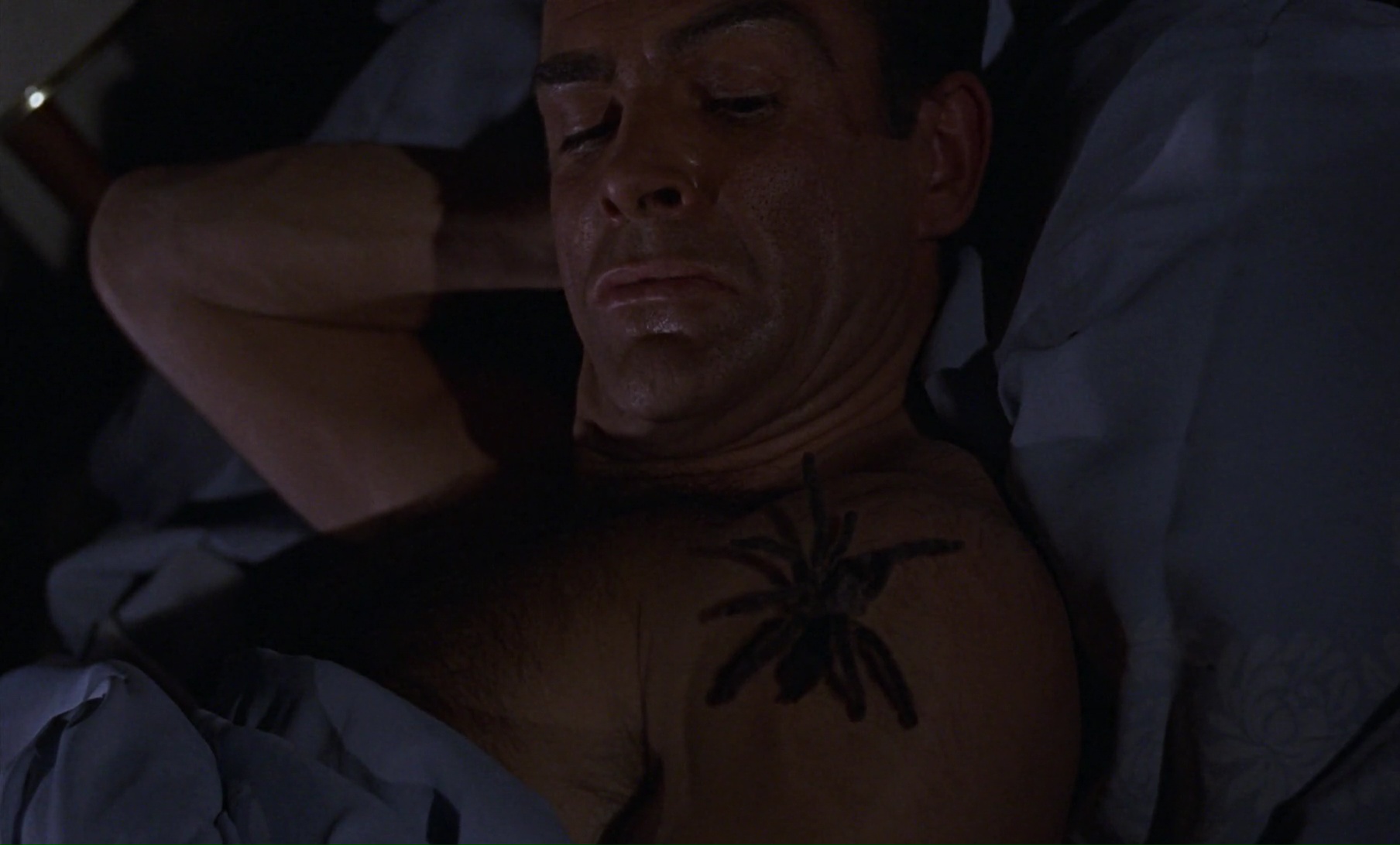 Forcément oui la course poursuite en voiture a prit un coup de vieux et le tournage en studio se remarque à des kilomètres, forcément les combats ne sont pas aussi punchy que ce que l’on fait aujourd’hui, mais ça ne me dérange pas. Ça donnerait même un petit charme au métrage. Charme qui opère d’ailleurs bien durant presque toute la première heure. James Bond est envoyé en mission, il fait tomber toutes les femmes à ses pieds, il a un permis de tuer. Sean Connery campe à la perfection cet agent secret, entre flegme certain, séducteur, tueur et parfois, comique un peu raté (ces quelques punchlines ne sont pas parmi les plus réussies). Je peux donc comprendre que le personnage a marqué les esprits, tout comme son acteur. La plupart des bases de la saga sont déjà là, comme M qui envoi James en mission, Moneypenny, le fameux thème de John Barry, ou encore l’introduction où James tire sur l’écran qui devient ensanglanté, avec le gun barrel. Il ne manque à l’appel que les génériques stylisés et les gadgets. La première heure, que l’on pourra considérer comme l’enquête, fonctionne plutôt bien. Même si certains aspects m’auront fait rire. James sait tout à l’avance, et envoyé secrètement en Jamaïque, sauf qu’à son arrivée, il est déjà surveillé par un homme, prit en filature par une voiture, et monte dans la voiture d’un autre attaquant. Pour un agent dit « secret », on dirait que tout le monde le connaît déjà. Mais si le début fait illusion, la suite se gâte un peu. Le récit se perd alors un peu en longueur, et lorsque James arrive sur l’île du Dr No, mmmm… Je sais bien que le plan où Ursula Andress apparaît est devenu culte, mais son personnage m’horripile. Inutile au récit, incapable de faire quoi que ce soit, il faut sans cesse la sauver.