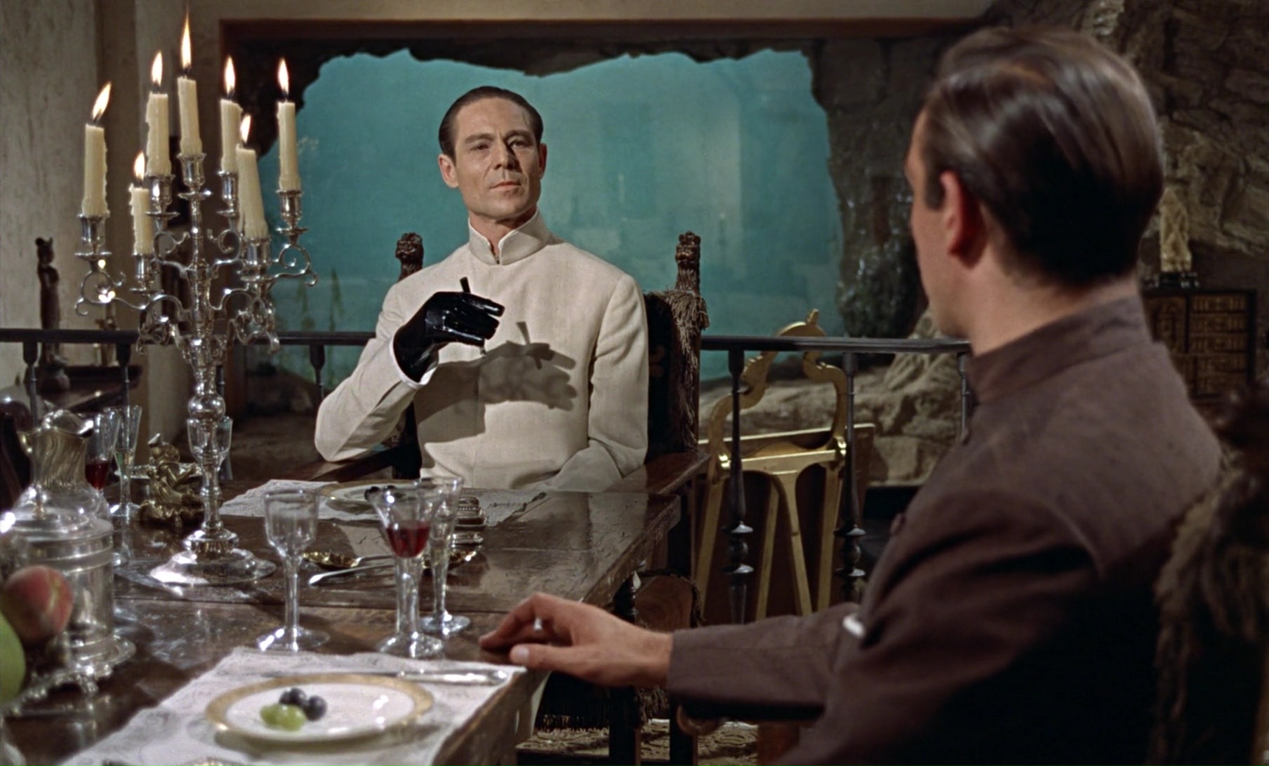 Le fait qu’elle n’a absolument rien à voir avec l’intrigue est dommageable également, elle apparaît comme ça car il faut un nouveau personnage féminin à sauver plus tard, traverse le récit, puis s’échappe avec Bond. Si on ajoute que comme le guide de James, elle croit qu’un dragon vit sur l’île, et nous voilà en pleine naïveté des années 60. En fait, la partie sur l’île est à mes yeux totalement ratée, à part la première rencontre avec Dr No. L’arrivée, la présence de Honey, les péripéties dans la jungle, tout cela m’a laissé de marbre. Puis, une fois capturés, le film délivre un duel verbal entre James Bond et Dr No. Un simple duel verbal, où le docteur nous raconte son plan, et où James tente de faire le malin, mais ça ne marchera jamais (il tente de cacher un couteau, mais le Dr No a déjà un point d’avance sur lui). J’aurais voulu dire qu’à partir de là, le film s’élance dans un grand final, sauf que non. Ce qui suivra sera du niveau de ce qui précédait, donnant alors à cette rencontre un côté « je raconte mes plans pour ensuite mourir connement », cliché du genre créé ici, et dont des œuvres récentes se moquent parfois (Kingsman). Ce qui aurait pu mener à un duel au sommet, verbal puis physique, se pète les dents face à un final simpliste, qui pourra se résumer à « je tourne une valve, donne trois coups de poings, et pouf, on a gagné ». Je dois dire que je suis déçu de ce premier opus. Je comprends son statut de film culte, ce qu’il a engendré, mais il me semble que les créateurs sont encore trop timides, trop restreints, comme le prouve l’absence de gadgets, quelques longueurs, quelques maladresses également. Tout cela ajouté à l’âge qui se voit du film donne un rendu kitch pas forcément du plus bel effet.
