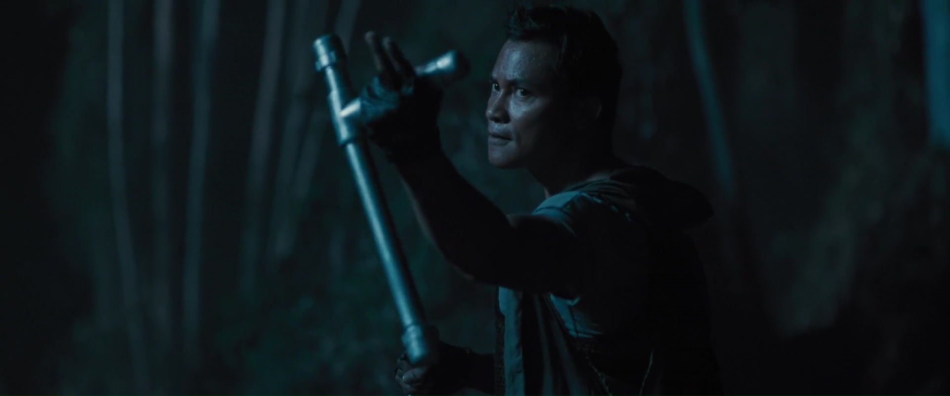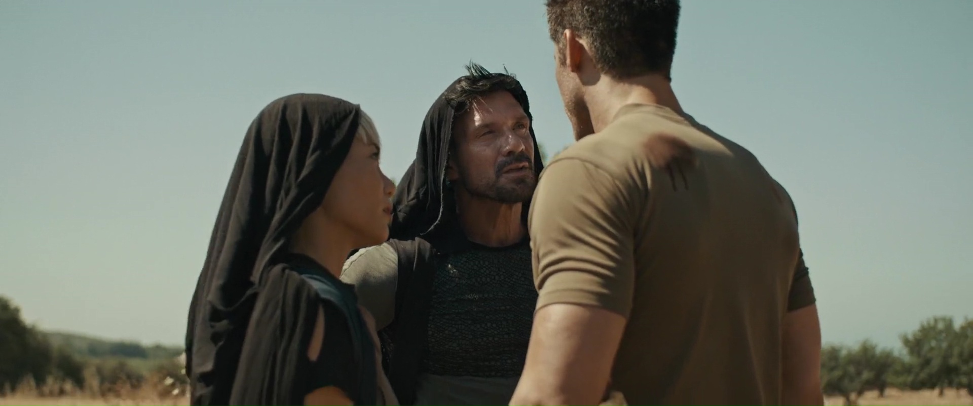 Avec son pitch improbable, mix de Predator et de Mortal Kombat, son aspect comic book prononcé, son budget plus que confortable (entre 24 et 28 millions suivant les sources), son casting de grandes gueules de la série B avec mon petit Nicolas Cage qu’on ne présente plus, Frank Grillo (American Nightmare 2 et 3), Alain Moussi (les récents Kickboxer), Rick Yune (Fast and Furious, Meurs un Autre Jour) ou encore Tony Jaa (Ong Bak), évidemment que Jiu Jitsu faisait envie. Est-ce que ça valait le coup de foncer voir la bête le jour de sa sortie US, en attendant, au mieux une série B couillue et au pire un nanar à mourir de rire ? Malheureusement, non, car si le réalisateur, Dimitri Logothethis, a toutes les cartes en mains pour nous divertir, il se plante, notamment à cause de son envie de générosité, qui a sans doute bouffée à vitesse grand V le budget pourtant énorme du film pour une production de ce style. Car avec ces combattants qui s’affrontent pour l’avenir de la Terre façon Mortal Kombat, le tout pour disons 28 millions, il faut dire que c’est, niveau film de tournois, un plus gros budget que ses modèles, à savoir Mortal Kombat en 1995 (18 millions) ou que Dead or Alive en 2006 (21 millions). Et pourtant, Jiu Jitsu paraît beaucoup plus fauché. Alors ici, déjà, c’est le bordel dans l’histoire, avec cette commette qui passe près de la terre tous les six ans, ces combattants improbables qui s’entrainent au Jiu Jitsu, l’armée qui est aussi dans le coin, et cet ennemi, sorte de Predator du pauvre, camouflage optique et vision infrarouge à la clé histoire que l’on ne se goure pas sur l’influence du monsieur, mais qui dés qu’il devient visible, fait beaucoup plus penser à un ersatz de méchant de Power Rangers. Mais ne vous inquiétez pas, oh spectateur, le film se servira d’ancestrales fresques murales pour nous raconter en détail son histoire.