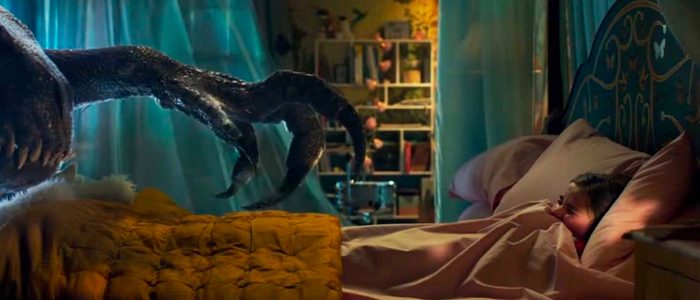 Pourtant, cette première partie, malheureusement courte, est la plus divertissante. 35 minutes au compteur seulement, quelques plans qui ont sacrément de la gueule (la chute de la boule dans l’eau, le dinosaure que l’on aperçoit à travers les cendres du volcan, le dinosaure stoppé par les écoulements de lave). Ça va vite, et le réalisateur a souvent des idées visuelles franchement classes. Puis vint la seconde partie sur le bateau, chiante au possible, et qui continue d’accumuler les éléments bigger than life totalement stupides. Il n’a en effet jamais été aussi simple de s’infiltrer dans un bateau ennemi. On laisse un personnage de l’autre camp en vie pour s’occuper du raptor mais on la laisse intégralement sans surveillance. Un soldat trouve le cage du T-Rex ouverte mais ne se pose aucune question, se contentant de la refermer. Seriously ? Au bout d’un moment, faut pas s’étonner que les méchants perdent toujours s’ils sont aussi cons ! Et l’ennui commence à s’installer. Car à force de vouloir copier ce coup-ci Le Monde Perdu, ben on se rappelle que le voyage en bateau du dit titre lui ne durait, au bas mot, que 3 ou 4 minutes. Ici, ça s’éternise pendant bien 35 minutes encore ! Reste le troisième acte vous me direz, qui a le don de changer de décor. Car si le dernier acte du Monde Perdu se déroulait en ville, en lâchant un T-Rex, ou qu’un peu plus tôt, les gentils personnages libéraient tous les dinosaures qui faisaient un carnage dans le camp ennemi, et bien oubliez tout ça ici. Dans une ambiance limite gothique (et fort réussie), on assiste à une dernière partie qui nous lâche quelques minuscules et ridicules dinosaures, et il faudra faire avec. Et encore une fois, au lieu d’assumer pleinement son délire avec le nouveau dinosaure (L’Indoraptor ou je ne sais plus quoi), le film prend un tournant étrange et qui aurait d’ailleurs pu être salvateur. Sauf que arrivé à ce stade, Jurassic World 2 n’a absolument plus rien à raconter, et se contente de temps en temps de balancer quelques idées, sans jamais rien en faire.