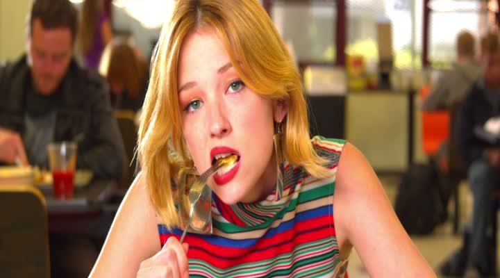 Ainsi, finir une soirée drogué amènera Smith dans un remake de La Vampire Nue de Jean Rollin en tombant sur une fille rousse poursuivie par des hommes portant des masques d’animaux. Pire, en rencontrant la petite amie lesbienne de Stella, il reconnaîtra comme dans un film de Lynch une des femmes de ses rêves. Le problème, c’est que la fille en question, en plus d’être une nymphomane jalouse, est une sorcière un peu rancunière et effrayante. Kaboom ne recule devant rien, devant aucune blague, aussi débile soit-elle (l’auto fellation du coloc), aucun cliché, et semble nous balader dans un rêve éveillé bien troussé visuellement. C’est souvent beau, très bien éclairé, bourré d’idées, et le montage donne un rythme bien trouvé et particulier au métrage. Et on se retrouve à rire de bon cœur devant certaines situations, entre la sorcière lesbienne jouée par Roxanne Mesquida ou la jeune fille qui a besoin de sexe avant ses exams jouée par Juno Temple. Ajoutons à cela d’autres personnages secondaires bien tarés comme Rex le meilleur ami du coloc ou le Messie, le drogué de l’université qui ressemble à Jesus, et vous avez une idée du délire dans lequel Kaboom nous embarque.