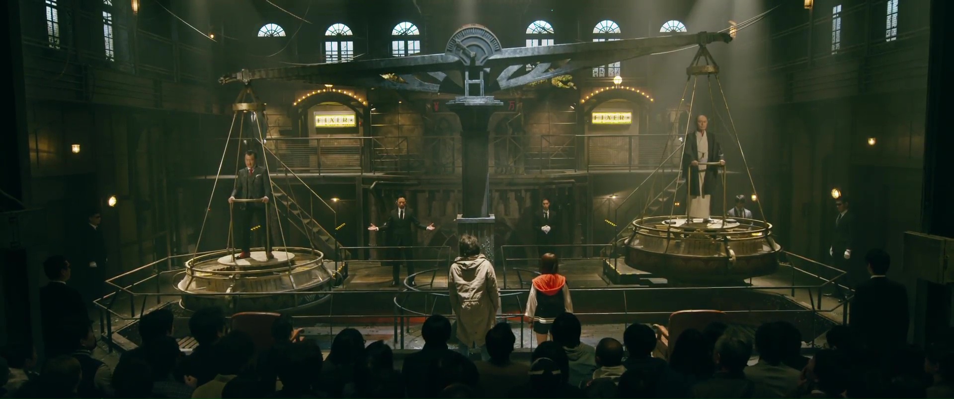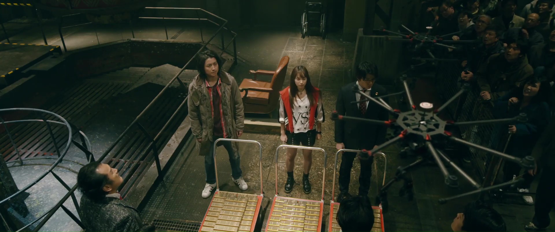 Pourtant, dans sa première partie, on est confiant, tant le film, sans forcément changer de manière dramatique sa formule, parvient à plaire, captiver. Fujiwara boit toujours sa bière avec autant d’entrain, l’univers dépeint est excellent, avec ce Japon qui va très mal suite aux jeux Olympiques de 2020… Ah ben ça, l’équipe n’avait pas prévu que les jeux de 2020 seraient repoussés à 2021… En espérant qu’ils se sont trompés pour le reste aussi, sinon on est vraiment dans la merde ! Le Japon va mal, les riches sont toujours plus riches, les pauvres sont encore plus pauvres, l’écart se creuse, le gouvernement est endetté, et sa seule solution pour que tout aille mieux : sacrifier ceux qu’il juge peu utile à la société afin de rembourser la dette du pays et voir un avenir meilleur, pour les générations futures, et pour ceux au pouvoir, ainsi que pour les riches, car il faut pas déconner. C’est donc forcément la classe d’en dessous, la classe moyenne, qui va devoir prendre cher et être jetée comme un mouchoir sale. Mais en participant pour se faire un peu d’argent à un jeu plus ou moins mortel (la tour de Babel), que Kaiji gagne bien évidemment, sinon, pas de film, notre héros un peu looser se retrouve à rejoindre une fine équipe qui va devoir, en 10 jours, gagner au moins 50 milliards de yens afin d’empêcher une loi de passer, loi qui va mettre une bonne partie de la population dans la merde. Oui, cette introduction, cette mise en bouche, elle est excellente, on retrouve tout ce qui fait le sel de Kaiji. Mise en scène, musique, épreuve, acteurs. Malheureusement, ce qui va suivre ne sera pas du même niveau, puisque dés lors, Kaiji se retrouve avec d’autres personnages. Et là, ce n’est pas le souci qu’ils soient peu intéressants (même si en soit, certains sont juste vides), mais le soucis que pour la plupart, ils ne servent à rien. On met Kaiji en équipe avec une jeune femme car elle est jugée chanceuse. Oui oui, ok, je vois le genre, mais en soit, à quoi sert-elle dans les grandes lignes ? Car oui, Kaiji, lorsqu’il fera un jeu extrêmement dangereux (Le Grand Saut) se servira d’elle pour augmenter ses chances de survie, mais il aurait pu finalement très bien demander à quelqu’un d’autres. Elle ne sert strictement à rien dans les grandes lignes de l’intrigue.