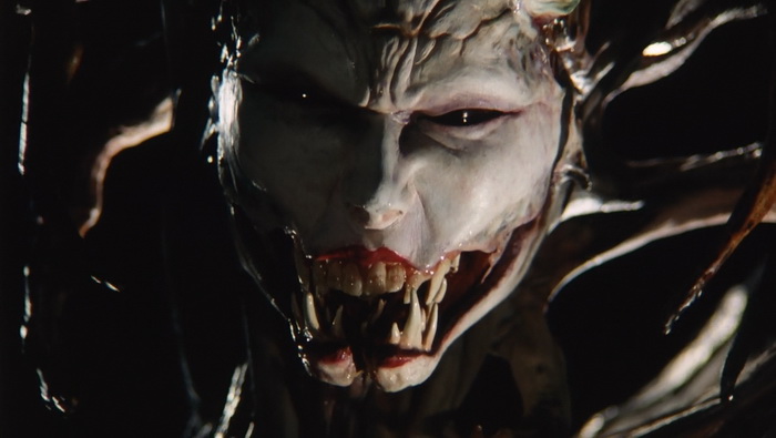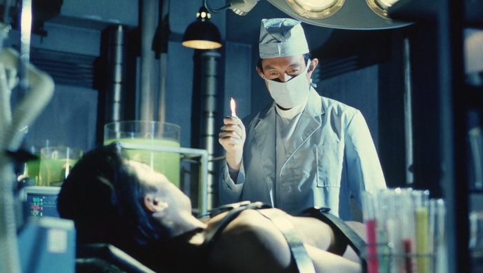 L’univers visuel est souvent assez fou, très audacieux, et ce dès la scène d’introduction dans cette espèce de caverne étrange. On est ici dans quelque chose de plus dark qu’à l’accoutumée, avec des créatures très organiques, et même une ambiance qui se rapproche parfois du body horror lors de certains effets. On sent réellement l’inspiration de Shin’ya Tsukamoto et de ses deux premiers Tetsuo, mais pas que puisqu’un des monstres au visuel assez horrible est une sorte de mix entre l’alien de Giger et d’un Freezer destroy de l’animé Dragon Ball Z. Ce n’est pas tout puisqu’on aura même droit à une araignée humanoïde qui donnera des cauchemars à tous les arachnophobes et une chauve-souris humanoïde bien creepy, kidnappeuse d’enfant, clairement source d’inspiration pour le Labyrinthe de Pan de Guillermo Del Toro. L’expérimentation, Keita Amemiya ne la fait pas seulement sur le visuel d’une noirceur parfois presque poétique, mais aussi dans sa mise en scène, empruntant des effets de caméra à droite à gauche (coucou Evil Dead) qu’il refait à sa sauce, mais aussi dans les scènes d’action. Ces scènes d’action, bien que souvent courtes, sont très aériennes, à grands renforts de câbles (parfois malencontreusement voyants), remplies de cascades souvent impressionnantes, pour un résultat réellement fun pour qui a un tant soit peu aimé Bioman et autres X-Or dans sa jeunesse, ici en bien plus adulte, plus organiques, et plus violent malgré tout (le liquide visqueux sortant de membres coupés). Le rider attaque comme un prédateur et Amemiya aime le filmer sous tous les angles pour bien le maitre en valeur, avec des ralentis bien placés et des bruitages soignés. Malgré des moments de silence presque contemplatifs qui semblent être là pour accentuer la mélancolie du Rider, ce Kamen Rider ZO se fait très rythmée et bien qu’il ne fasse que 48 minutes génériques compris, il semble en durer à peine 20. Est-ce signe qu’on a passé un très bon moment ? Très certainement.