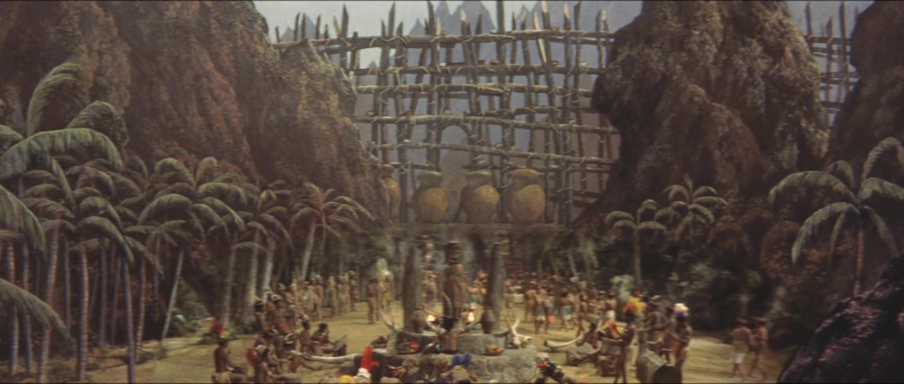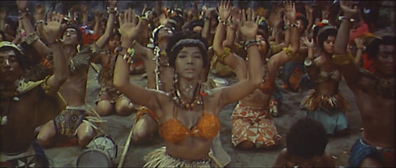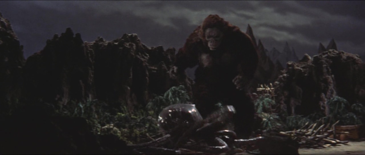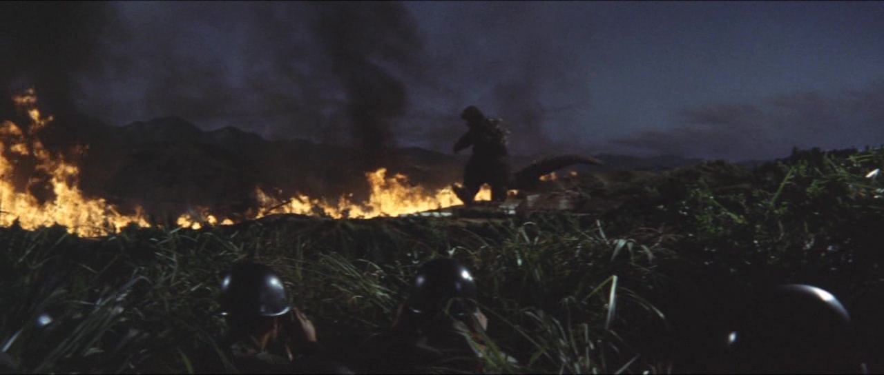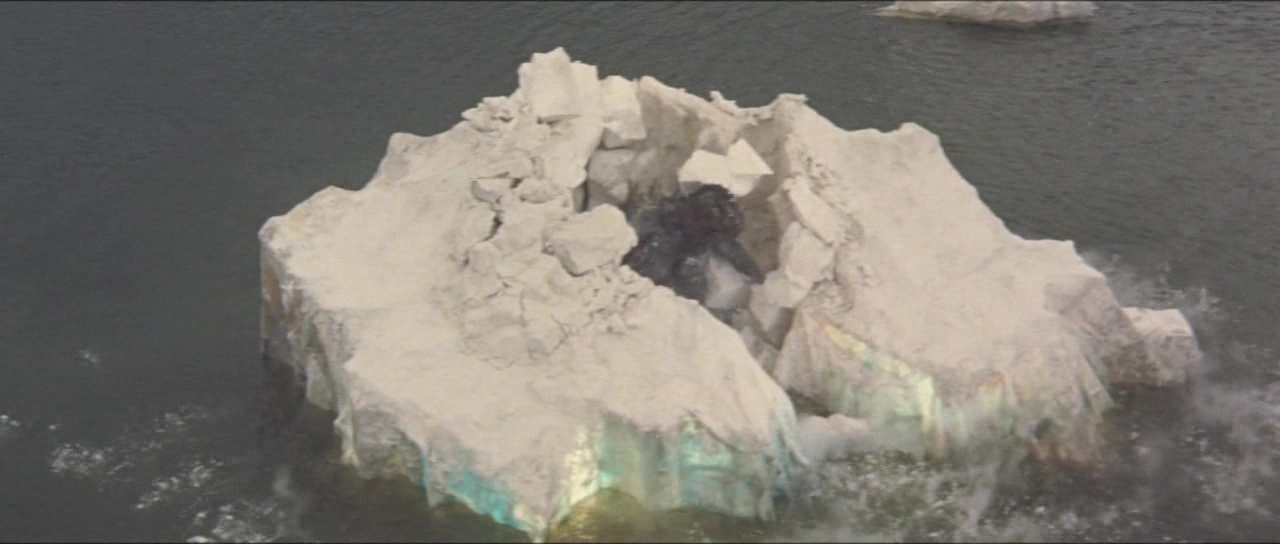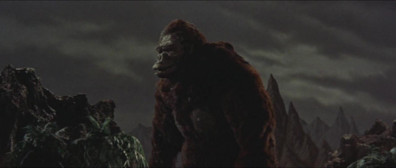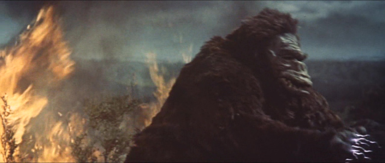 Pour autant, si le métrage est un ratage, tout n’est pas à jeter. Le passage en couleur par exemple n’est pas foncièrement mauvais et donne une couche de modernité à la saga après deux épisodes en noir et blanc. Honda sait filmer et nous livre par moment quelques plans intéressants. Seulement à côté, la Toho commence très doucement à amener quelque chose dans la saga : un ton beaucoup plus léger. Les catastrophes sont encore loin, mais l’on sent malgré tout déjà cet élément s’insérer dans le récit dès qu’il le peut pour un résultat qui fera, au choix, sourire ou pleurer. Sur le papier pourtant, se faire affronter les deux stars était quelque peu attrayant. Godzilla avait bien affronté Anguirus, et les films de Kaiju se développant à vitesse folle, il y avait donc du boulot et des versus possibles en pagaille. Mais la Toho a préféré jouer sur la célébrité du singe. Et là encore, il y aura de quoi être déçu, le film n’étant pas un duel au sommet, mais juste un versus comme les autres. Versus qui mettra du temps à arriver, comme souvent certes, mais comme la première partie ne passionne absolument pas. Personnages peu intéressants, rythme lent, scénario peu développé. Godzilla ne représente plus du tout la bête au message anti-nucléaire et n’est qu’un Kaiju de plus. Godzilla est vide, un peu comme ses humains, énervants, peu utiles, qui prennent des décisions stupides. Là vous me direz que de toute façon, vous voulez du Kaijus, des monstres géants qui se foutent sur la gueule. Oui dans le fond, vous avez raison, mais comme il faut attendre 26 minutes pour apercevoir Godzilla (37 minutes pour Kong) et bien plus pour que l’histoire se bouge enfin, et bien il est dur de passer tout le reste sous silence.