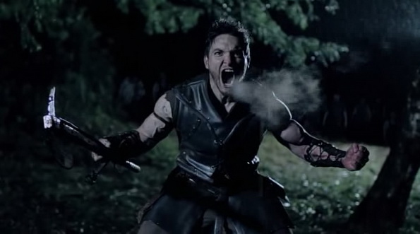 C’est très dommage car le charcutage de zombies à l’arme blanche, ça produit toujours son petit effet, d’autant qu’ils sont assez nombreux sur certaines scènes et pas trop mal fichus en terme de maquillage (pas tous, mais bon). Il n’y a aucune intensité, les morts vivants prennent des coups qui sonnent faux, tout comme le sang numérique assez hideux. On a bien quelques intestins ci et là histoire de donner une petite touche de gore bien trop discrète pour réellement retenir l’attention si ce n’est à nouveau une petite fulgurance toujours grâce à notre chevalier acrobate qui, d’un seul coup de hache à deux mains, va découper de façon nette et précise un zombie de façon verticale. Ce n’est pas très bien fait, mais ça apporte une petite touche de fun à ce petit film qui se prend bien trop au sérieux.
