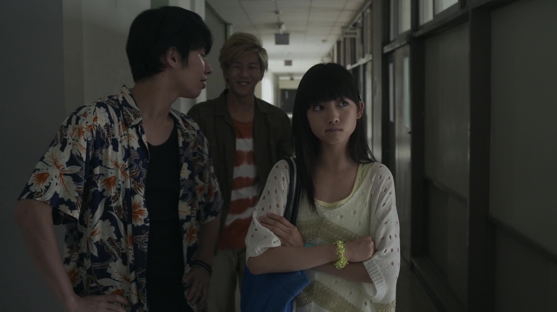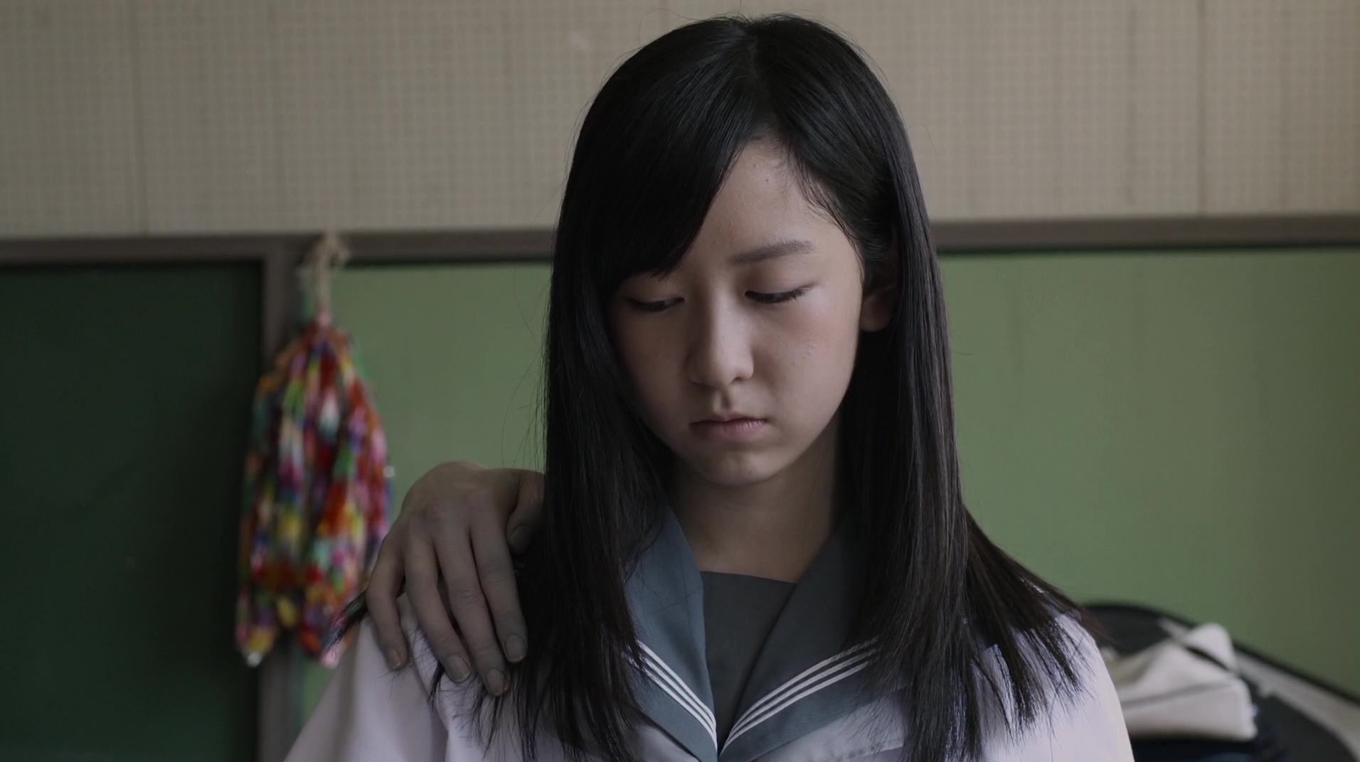 D’habitude, vous le savez, j’aime beaucoup m’étendre avant d’entrer dans le vif du sujet sur le fond d’un film, sa création, ses origines. Dans le cas de ce Kotodama, ce n’est pas qu’il n’y a rien à dire, il y a beaucoup à dire, mais le souci, c’est que Kotodama, de son titre original Gakkô No Kaidan, est un peu, dans le fond, le cinquième opus d’une saga adaptant des romans, et dont les premiers opus datent des années 90. Et le souci, c’est que malgré mon immense collection, et le fait que j’ai d’ailleurs les trois premiers métrages en DVD qui m’attendent, et bien je ne les ai jamais vu. Le peu que j’en sais, c’est qu’ils sont plutôt appréciés, ont bonne réputation, et mettent en scène des enfants. Et pour ce cinquième opus, années 2010 oblige, les enfants sont maintenant des adolescents. Ma foi, pourquoi pas, dans le fond, on y perd sans doute un petit côté léger, voir familial (je suppose), mais rien de bien dramatique, tant que le cœur est là, et que les films sont efficaces. Donc, Kotodama, ou Gakkô no Kaidan, cuvée 2014, ça donne quoi ? Premier bon point, on trouve derrière la caméra Ochiai Masayuki, et si sa carrière a eu des bas après des débuts très prometteurs (oui, le remake Américain Spirits, remake de Shutter, c’était très mauvais), on pouvait dire qu’il remontait la pente. Non pas que l’année 2014 soit du pain béni pour lui, puisqu’il signait également un remake de Ju-On avec Ju-On Beginning of the End, et que si ça restait potable, c’était totalement anecdotique. Mais il sait filmer, sait cadrer, et sait livrer un produit un minimum efficace. Et dans le cas de Kotodama, qu’il écrit également, le pari est réussi. L’efficacité est là, la mise en scène est solide, les effets sont ménagés et ne se suivent pas, ni ne se ressemblent, et le scénario, avec ces différentes temporalités, sait se faire intéresser, à défaut de totalement surprendre dans ses révélations ou son déroulement par moment.