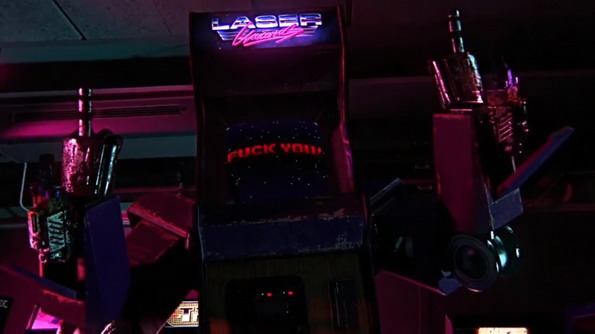 Parce que j’avais prévenu que je spoilerais, ce film généreux nous donne en vrac : une borne d’arcade qui prend vie et qui arrache un parcmètre afin de récupérer des pièces lorsque le message « Insert Coin » apparait ; un flic à tête de triceratops qui ne tire que dans les corones des ennemis, des raptors qui lancent des lasers avec les yeux ; une viking armée d’une sulfateuse et chevauchant un loup géant ; le Dieu Thor qui est appelé sur Terre qui bande ses muscles en disant au héros du film « Hey, tu as vu mes pecs ? »… Vous en voulez encore ? Ok, attention c’est reparti pour un tour : un hackeur à la coupe mulet qui hacke le temps à l’aide d’un Power Glove ; notre héros qui voyage à travers le temps debout sur un clavier de l’époque façon MartyMcFly debout sur son skate volant ; Adolf Hitler adepte de Kung Fu et se surnommant Kung Führer ; une discussion entre deux nazis pour savoir qui a la moustache la plus aryenne ; … Ca fait déjà beaucoup ? Oui certes, mais pourtant je ne vous en ai pas cité la moitié… C’est dire s’ils sont allés loin. Et oui, « Everything is possible » comme le fameux philosophe Ike Eha. Sont forts ces Suédois…