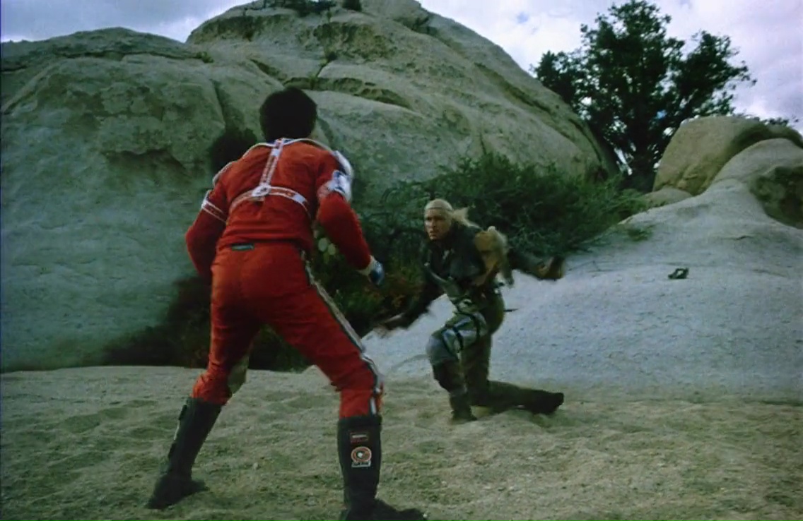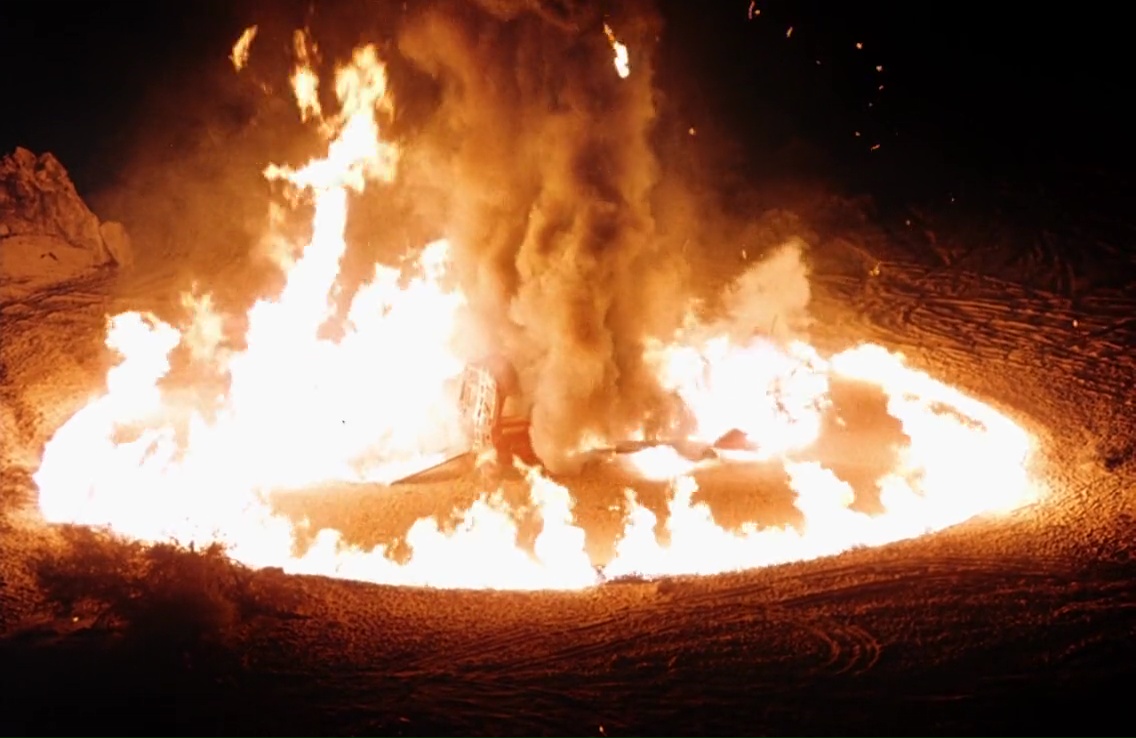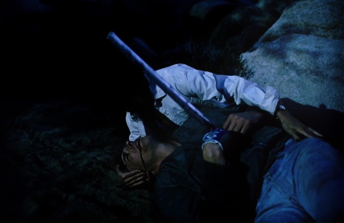 Et à la vision de la chose, on comprend bien vite comment la production a comblée les scènes manquantes, et a surtout réussie à atteindre les presque 1h30 syndicales. Simple, c’est une suite ? Alors scène 1, on fou un survivant du premier film chez le psy, et le traumatisme lui donne des flashbacks. De très loooooongs flashbacks. C’est simple, la première partie est quasi intégralement constituée de flashbacks, un bon 15 minutes ! Quand le film commence enfin, après un bon gros rappel du premier film avec son final, nous faisons la connaissance de notre fameuse bande de personnages, incluant donc deux survivants du premier film, et de nouveaux personnages qui rassurez-vous, manquent tous de matière grise. D’ailleurs pour les connaisseurs, on reconnaîtra Kevin Spirtas qui faisait le héros du 7ème opus de Vendredi 13 quelques années plus tard, et William E. Pugh, faisant le Maire dans Robocop 2. Par contre dans les faits, on leur fait jouer du vide. Comment justifier l’intrigue ? Simple. C’est une bande de jeunes, ils aiment la moto, il y a deux personnages traumatisés du premier film, et ils décident de faire de la motocross juste à côté du lieu des événements du premier film. Malin… Ou pas ! Enfin, ça c’est dans les faits, car on voit bien que le film n’a pas été tourné au même endroit, et que les collines entourées par un désert aride et jaunâtre a été remplacé par un désert quelconque et moins loin pour abaisser les coûts de production, et surtout, un désert un peu trop verdoyant avec de la végétation partout. Le côté aride et dangereux en prend un coup. Décors low cost, check, histoire pourrie, check. Et comme un personnage le dit toujours dans ses cas là : I have a bad feeling about this. Et oui, c’est le cas. Mais ils le cherchent bien en même temps.
