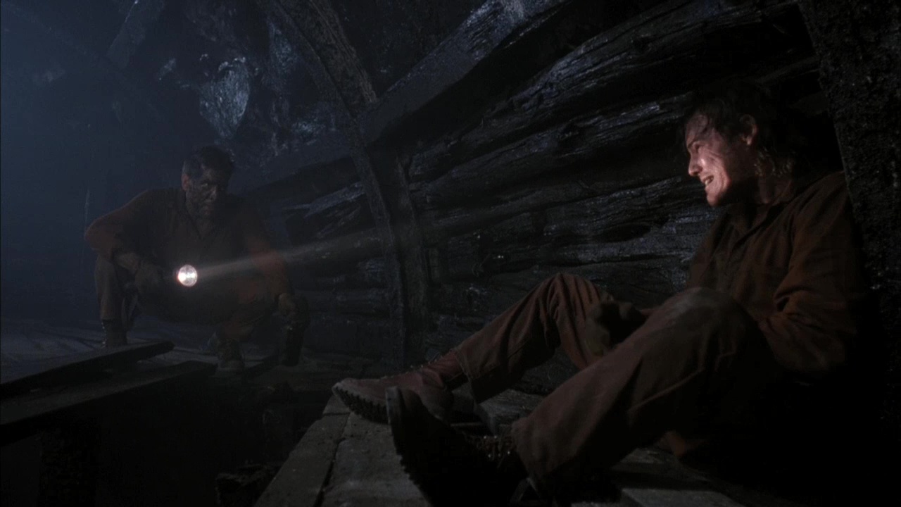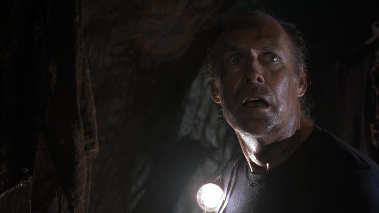 Mieux, quand le film entre dans sa seconde partie, il nous montre des effets spéciaux tout à fait correctes, dévoile sa créature et se lâche dans quelques effets sanglants bienvenus. Le film reste certes totalement encré dans son statut de série B, mais il ne veut jamais être plus. Le métrage se montre même efficace, en faisant évoluer ses personnages dans des lieux de plus en plus étroits, en les tuant les uns après les autres par une créature mutante (dont l’origine est ici inexpliquée). On aurait aimé en savoir plus, voir en voir plus par moment, mais la marchandise livrée est celle attendue, sans réelle surprise certes, mais donc hautement divertissante. Son mélange de film de monstre classique et de critique sociale du milieu dans les années 50, ainsi que les lieux de l’action jouent en faveur du film, rendant l’ensemble plutôt intéressant. Malgré tout, comme la créature du film ne sera pas vraiment expliquée et n’arrive d’ailleurs véritablement que tardivement, on pourrait presque croire là à un élément rajouté afin d’être plus vendeur. Pourtant, autant la créature en elle-même que son antre que le spectateur découvrira vers la fin offrent de très beaux moments visuels. En gros, La Créature du Cimetière, c’est de la série B classique, mais plutôt bien foutue, avec un Brad Dourif fou et quelques bonnes idées. Dans la moyenne des bonnes productions du genre de l’époque donc.