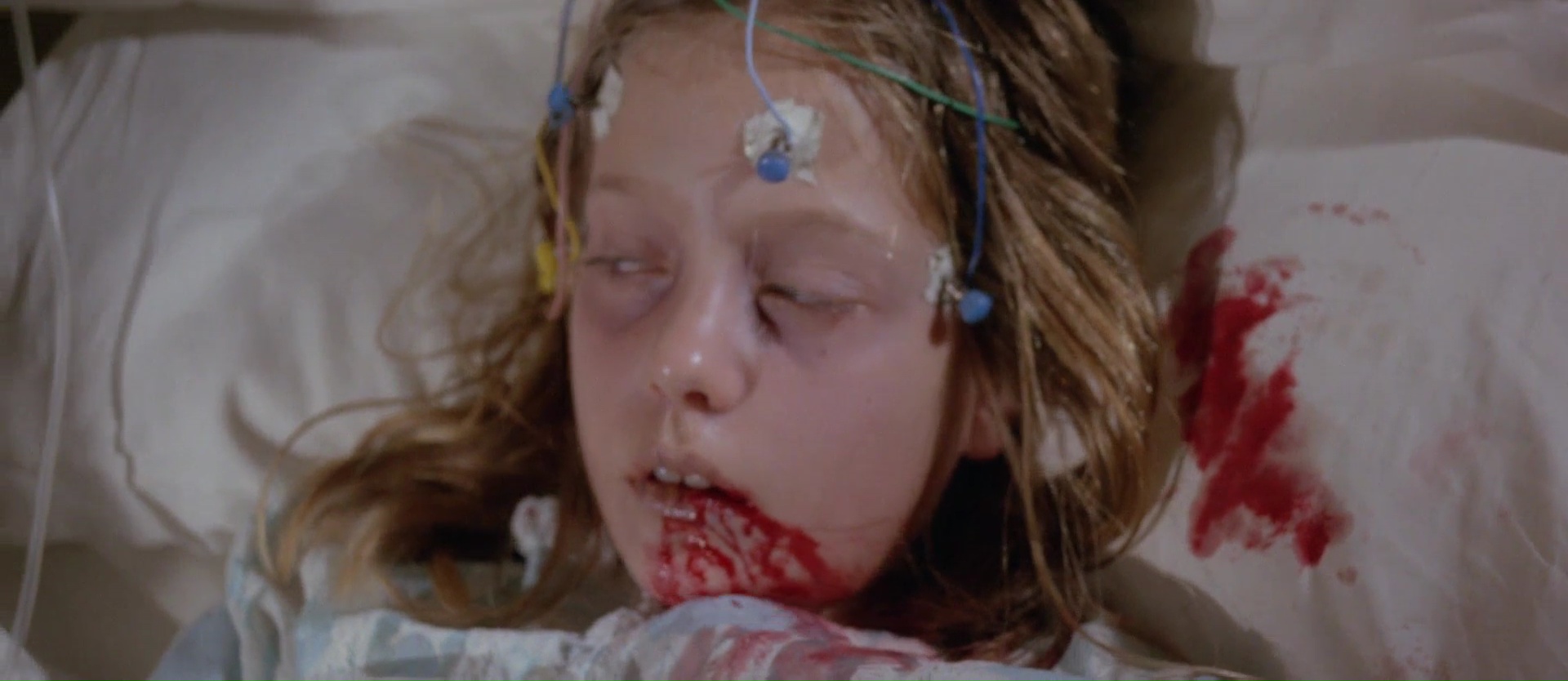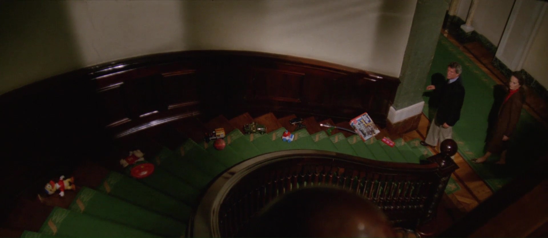 Et puis il y a la musique de Fabio Frizzi, qui revient donc une nouvelle fois après avoir été absent de La Maison Près du Cimetière (et donc remplacé par Walter Rizzati). Il livre un thème principal qui lui ressemble bien et assure donc la continuité avec ses précédents travaux. Le spectateur connaisseur est confiant. Fulci prouve qu’il est, même avec un budget réduit (comme toujours) un bon technicien, et les idées de mise en scène se multiplient. Seulement voilà, passé les dix premières minutes en Égypte, fortement réussis, le film délocalise à New York (d’où son titre original), et tout s’écroule. Alors évacuons tout de suite certains éléments, oui on retrouve certains acteurs déjà vus précédemment chez Fulci, comme Giovanni Frezza (le petit garçon de La Maison Près du Cimetière), et oui, le doublage anglais proposé sur le dvd Français est tout simplement mauvais et lui donne un côté tête à claque, qui était déjà bien présent dans l’œuvre précédente ceci dit. Brigitta Boccoli, jouant la jeune Susie, très important dans le récit, passe déjà beaucoup mieux, même si elle aussi n’est pas aidée par le doublage. Voilà, ça c’est fait. En terme de mise en scène, on trouve de très bonnes choses également, entre des plans réellement beaux, quelques trouvailles techniques bienvenues (la vue subjective du serpent par exemple, ou encore ce plan dans l’escalier jonché de jouets) et j’en passe. Fulci voulait poser une ambiance sur son film, et on peut le dire, de ce côté là, il a indéniablement réussi, il instaure l’ambiance qui était totalement absente de l’Éventreur de New York. Malheureusement, passé ce travail sur l’ambiance et la technique, le reste enfonce le film assez profondément. Déjà, parlons du score musical de monsieur Frizzi.