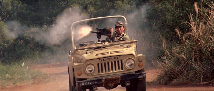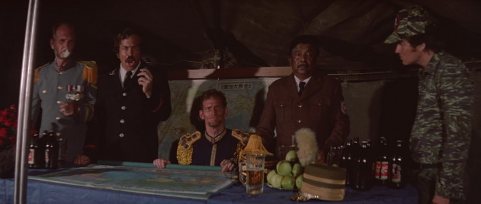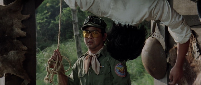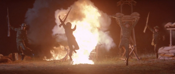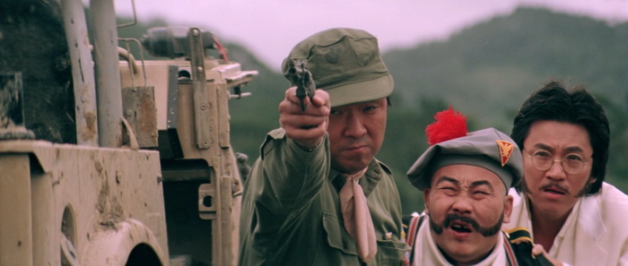 La Mission Fantastique est surtout connu pour la présence au générique de la superstar Jackie Chan, bien qu’il n’en soit pas la star principale. Comment Jackie est arrivé dans cette galère ? L’histoire remonte à quelques années auparavant. Lorsqu’à la fin des années 70, Jackie Chan quitte Lo Wei pour rejoindre la Golden Harvest, il se retrouve confronté à un petit souci. Voyez-vous, Lo Wei a quelques accointances avec les triades et, sans doute triste que son petit protégé Jackie s’en aille chez la concurrence, il lui envoie ses copains à machette au cul, histoire de gentiment le persuader d’arrêter les conneries et de rentrer au bercail. C’est Jimmy Wang Yu, qui lui aussi disposait de toute une panoplie, pour ne pas dire un vaste réseau, de contacts chez les triades, qui est intervenu en faveur de Chan pour que Jackie ne soit plus importuné par les sbires de Lo Wei. Jackie Chan était donc redevable envers Wang Yu qui avait réglé tous ses problèmes. Ni une, ni deux, parce que Wang Yu n’a semble-t-il rien d’un altruiste, Chan se voit « demander » de jouer dans un projet taïwanais un peu fauché et barré intitulé La Mission Fantastique, Fantasy Mission Force de son titre anglais. Forcément, Jackie Chan n’a pu refuser une si belle offre, bien qu’il soit difficile à dire s’il savait dans quoi il s’embarquait avec ce film. Mais revenons-en au film en lui-même, de quoi ça parle-t-il donc La Mission Fantastique ? Pfiou, difficile à dire. Alors oui, il y a une trame principale. Ça se déroule pendant la Seconde Guerre mondiale, un groupe de mercenaires est envoyé sauver des généraux alliés qui se sont fait capturer par les Japonais, et à partir de là, le scénario va devenir tout bonnement indescriptible, sorte de mélange entre le film de guerre parodique, la comédie slapstick et le cinéma fantastique, avec un Chu Yan-Ping qui se fout éperdument de la cohérence de la cohérence historique de ce qu’il film, et au final de la cohérence tout court. La Mission Fantastique, c’est un film où absolument tout peut arriver, où rien n’a de sens, un énorme nanar WTF où le chaos règne en maitre, où le copyright n’est qu’une notion lointaine, et où le divertissement à tout prix est le maitre mot.