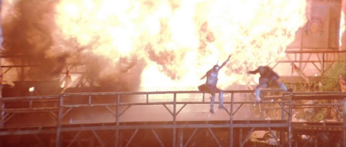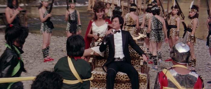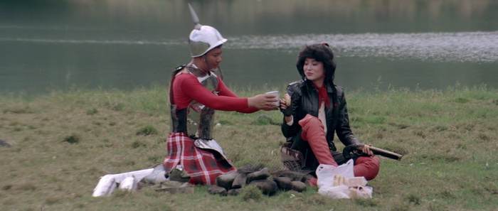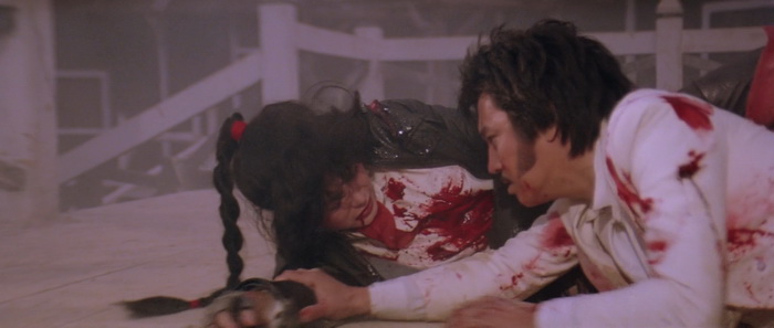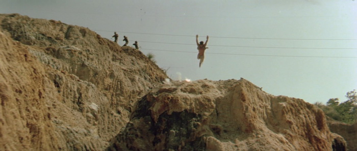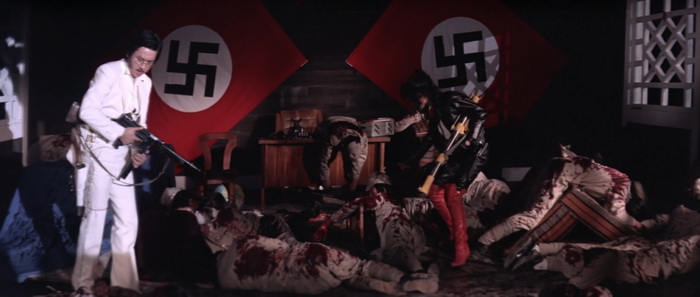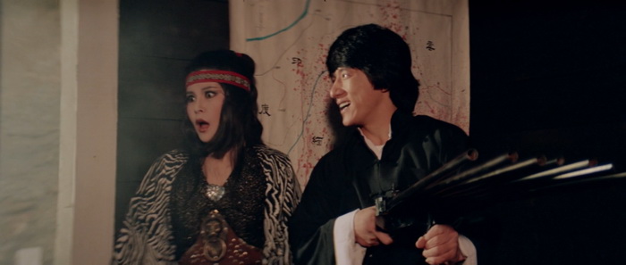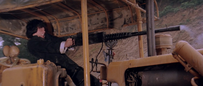 Dans La Mission Fantastique, on a des nazis en voiture américaine des années 70, des amazones cannibales, une maison hantée avec des vampires sauteurs, des passages musicaux improbables, des scènes en accéléré semblant sortir d’un épisode de Benny Hill, des décors de western, du kung fu, des grosses explosions, des costumes qui n’ont aucun sens, un moment Mad Max 2 parce que le film vient de cartonner partout dans le monde, ou encore un film bien sanglant où tout le monde ou presque meurt. Difficile à dire ce que Chu Yen-Ping a cherché à faire avec ce film, mais il l’a fait. Et à aucun moment il n’a essayé de lier correctement tous ces éléments entre eux parce que, pourquoi s’emmerder avec ça après tout ? Les amateurs de Jackie Chan seront forcément très déçus. Les amateurs de bisseries seront heureux. Les amateurs de Jackie Chan et de bisseries seront aux anges. Et ça tombe bien, c’est mon cas. La cohérence narrative est donc volontairement sacrifiée au profit d’un enchainement de situations improbables, voire ubuesques, qui donne l’impression d’être devant une œuvre profondément anarchique qui, forcément, risque de poser problèmes à certains spectateurs qui s’attendaient à quelque chose avec un minimum de logique. On a réellement l’impression que le scénario était écrit au jour le jour, en fonction des envies du moment, et tout le monde semble s’amuser dans ce bon gros joyeux chaos ambiant, même si on se doute que certains auraient préféré ne pas être là. Et mine de rien, le casting est assez luxueux puisqu’outre Jackie Chan dans un second rôle, on retrouve également la belle Brigitte Lin (The Bride With White Hair), le vieux briscard Jimmy Wang Yu (Un Seul Bras les Tua Tous) donc, Sun Yueh (Pedicab Driver, City on Fire), la jolie Pearl Chang (The Heroic Ones) dans son dernier rôle, et même Adam Cheng (The Sword, Zu) dans un micro-rôle. Pour les amateurs de combats martiaux, quelques moments valent le détour, bien que certaines bastons soient plus axées sur l’humour que sur les réelles compétences martiales des personnages, mais les scènes d’action sont plus généralement avec des mitrailleuses et autres lance-roquettes. Chu Yen-Ping aime tout faire péter, et il ne s’en prive pas.