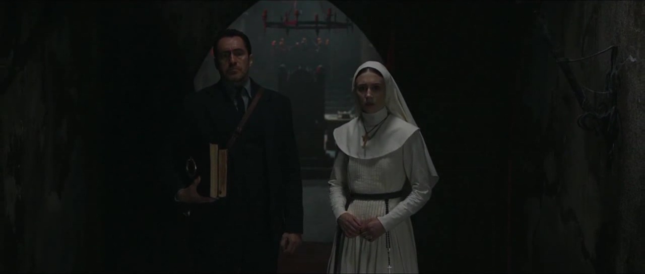 Et du coup, face à cette approche old school, les jumpscares, pour la plupart peu efficaces il est vrai, ne semble être là que pour remplir un cahier de charge et attirer le jeune spectateur dans la salle. Spectateur qui se sera donc senti arnaqué, osant donner des 1/10 ou 2/10 au métrage sur de nombreux sites tels imdb ou senscritique. La Nonne est donc une histoire d’ambiance, et en y adhérant, aucun doute, le film vaut le détour. Aussi simple son histoire soit-elle, voir parfois ayant quelques incohérences (un autre hommage à Fulci ?). Il ne faudra donc pas attendre de grosses surprises dans son déroulement, ni même dans ses personnages. L’ensemble est efficace mais plutôt cliché et prévisible. Mais ça fonctionne. Surtout que, surprise, on trouve dans le rôle de soeur Irene la jeune Taissa Farmiga, ayant déjà tenue le premier rôle dans le très bon drame 6 Years et dans la comédie parodiant les slashers The Final Girls. Surprise puisque j’apprécie beaucoup cette actrice, et qu’elle est la jeune sœur de Vera Farmiga, actrice dans les films The Conjuring. Alors si l’on ajoute à tout cela un score musical très joli signé Abel Korzeniowski, on obtient un film de genre certes sans surprises mais plutôt solide, à la condition que l’on sache finalement à quoi s’attendre, ou que l’on soit sensible à son approche nous ramenant plus de 40 ans en arrière.