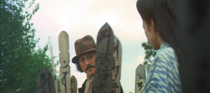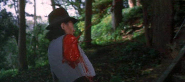 Discours qui, bien que transposé à l’ère Meiji, est plutôt représentative du climat du Japon dans les années 70, et donc un discours actuel à la sortie du film. Et malheureusement, toujours d’actualité, pas forcément au Japon d’ailleurs, mais dans le monde, à savoir une certaine élite qui contrôle la police et le peuple dans le seul but de servir leurs intérêts, de faire prospérer leurs affaires. Certaines scènes sont assez troublantes d’ailleurs, comme lorsque la police parvient à capturer un révolutionnaire, et le contamine volontairement avec la peste, dans le but bien entendu d’étendre la contamination sur un quartier pauvre. Et quand la situation leur échappe, pas d’hésitations, il faut brûler intégralement le quartier. Je l’ai dit, le fond du métrage est passionnant, au sein du métrage mais également comme reflet de notre propre société. Mais en faisant de Lady Snowblood 2 un film à message social et politique, l’équipe oublie quelque peu la force du premier film, sa poésie macabre, ces affrontements sanglants et pittoresques. Il faut en quelque sorte attendre le final pour retrouver alors la folie du premier film, un peu tardivement. Pas de surenchère dans l’action ici, le tout est réellement condensé dans sa toute dernière partie, quitte à décevoir. Un tel choix est à saluer en tout cas, le film ne reprenant pas à l’identique la formule du premier film, n’hésite pas à évoluer, dans ses enjeux, mais le résultat est déséquilibré, dans son action, son rythme, jusqu’à ses personnages principaux. Dommage. Mais après tout, la vengeance ayant toujours été la seule raison de vivre de Yuki, elle terminait l’aventure du premier film vide, sans but, sans… sans âme finalement. Ce second opus lui en trouve une.