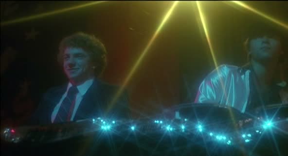 Le Bal de l’Horreur part pourtant d’une bonne idée, et surtout, d’une bonne première partie. Nous assistons à un accident causant la vie à un enfant alors que plusieurs d’entre eux s’amusent dans un bâtiment abandonné. Ils décident de garder le secret, et l’histoire reprend dix ans plus tard. Là, une ambiance plutôt sympathique se pose, avec des coups de fil inquiétants aux différents enfants de la scène d’ouverture, devenu des ados se préparant pour le bal de fin d’année. On se dit qu’on se tient là devant un bon slasher, qui va mixer l’ambiance d’un Halloween avec la sauvagerie d’un Vendredi 13. Que nenni, Le Bal de l’Horreur va vouloir jouer sur l’ambiance et développer ses personnages pendant toute la… première heure !!!! Oui, durant une heure, les seules choses que le spectateur aura à se mettre sous la dent, ce sera une (jolie) paire de fesses, des personnages tout ce qu’il y a de plus classique, un début d’ambiance qui s’évapore passé 20 minutes et… non c’est tout. Ah non, il y a aussi de la musique disco ! Bien entendu, pour le fan, revoir Jamie Lee Curtis si peu de temps après Halloween pour en découdre avec un tueur (arrivant bien tardivement), cela fait plaisir, tout comme de voir ce bon vieux Leslie Nielsen (mais sous exploité), mais c’est peu.
