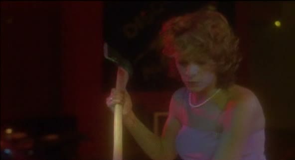 Le faible budget du film n’excuse bien entendu pas tout, puisque deux ans avant, Carpenter posait une ambiance tendue avec beaucoup moins d’argent (300 000 dollars de budget), et que la même année, Vendredi 13 faisait bien plus sanglant également avec moins (550 000 dollars de budget). Le souci, c’est que Le Bal de l’Horreur veut jouer dans la même cour, avec une première partie ambiancée et une seconde plus rythmée, mais que tout est mal dosé, et que Paul Lynch, le réalisateur, n’a pas le talent de Carpenter. Rapidement donc, on s’ennuie, avec d’interminables dialogues, des embrouilles de lycéens et des pas de danse sur la piste disco… Quand le tueur entre enfin en scène, il reste 20 minutes au compteur, ce qui est au final bien peu. Et encore, même ici, le métrage ne fait pas preuve d’une grande inventivité, se contentant d’aligner quelques meurtres assez sages. Seule consolation, ça bouge vraiment plus dés que le tueur prend la hache (et ça se fait un poil plus graphique), et contrairement à Michael Myers et autres Jason Voorhees, le tueur court, s’essouffle, ce qui lui donne un peu plus de réalisme. Si vous devez voir Le Bal de l’Horreur, accélérez jusqu’aux vingt dernières minutes, ce sera mieux.