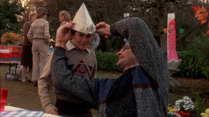 L’ambiance du film est souvent sur la retenue, afin de mieux coller à ce personnage qui tente de se fondre dans son nouveau moule de père exemplaire, très rigide, très (trop) à cheval sur sa propre conception de la famille, une famille rêvée, idolâtrée, qu’il semble ne pas avoir eue par le passé. Mais une conception de la famille qui déjà dans les années 80 était dépassée car le film s’attaque clairement à cette vision de la famille superficielle des banlieues américaines sous l’ère Reagan, comme bon nombre de films l’ont fait à cette époque-là. Peu de morts au final, très sage au niveau du gore, l’intérêt du film ne réside pas là. Il joue la carte du réalisme, et la tension monde crescendo au fur et à mesure que l’étau se reserre sur le personnage du beau-père. On se doute qu’il envisage de changer de famille, et donc par conséquent qu’il va tenter d’exterminer l’actuelle comme il l’a fait avec la précédente. Le scénario préfère la subtilité aux chocs sanglants, et l’histoire est au final plus complexe qu’il n’y parait. Chaque scène est conçue pour faire avancer l’intrigue d’une manière ou d’une autre, maintenant l’intérêt malgré, il faut l’avouer, quelques problèmes de rythme à mi-parcours, la faute peut-être à une intrigue secondaire (avec le jeune homme qui chercher à retrouver Jerry Blake) qui au final n’est qu’accessoire. La mise en scène de Joseph Ruben est sobre mais bien fichue, bien en adéquation avec le personnage central. Elle est calme lorsque le personnage se maitrise, et plus agitée et intense lorsqu’il explose dans le final. Le film contient pas mal de scènes fortes, surtout des « après scènes » à vrai dire, comme lorsque Jerry Blake s’en va tranquillement sur la route, en sifflotant, juste après avoir massacré quelqu’un à coups de poutrelle dans la tête, puis maquillé cela en accident de la route.