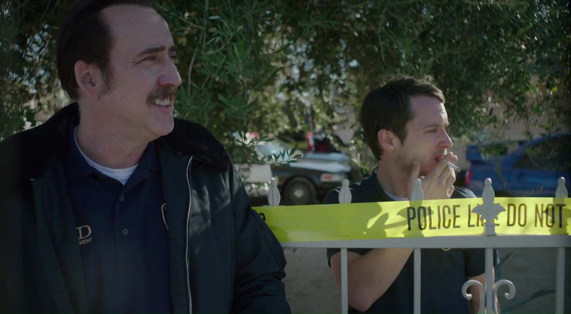 Et comme c’est leur tout premier casse, rien ne se passe comme prévu. Des histoires comme ça, on en a eu des tas. Des dizaines voir plus. Les casses qui tournent mal et blindés d’imprévus, c’est un cliché vieux comme le monde. Mais le film a ici, malgré il est vrai un budget sans doute assez faible, de bons atouts dans sa poche. Déjà scénaristiquement, il se décide à rester le plus réaliste possible sans jamais dévier de son sujet. Ainsi, on a deux flics, et un casse, et ce sera tout. Les personnages secondaires sont rares et peu présents, même si on notera la présence éclair de Jerry Lewis dans son tout dernier rôle (Nicolas Cage lui aurait demandé de participer au film, les deux étant amis depuis des années), et les lieux souvent limités, puisqu’une grande partie du film se déroulera dans l’appartement surplombant la fameuse boutique à braquer. Tout ce qui précède n’est que de la préparation. Classique oui, mais efficace, donnant ainsi un côté réaliste à l’intrigue tout en permettant au rythme de ne jamais faiblir. On pourra aussi citer le ton du métrage au rang des réussites. Car le métrage n’hésite pas à mettre quelques petites touches d’humour dans l’intrigue, sans pour autant en faire une comédie, ni en faisant dévier le ton général, qui s’avère de plus en plus sombre au fur et à mesure que les minutes défilent. Et ça, c’est dés le début du métrage, lorsque Nicolas Cage et sa magnifique moustache parlera avec son chef pour obtenir un budget, et que l’on voit un suspect s’enfuir en arrière plan. Les deux flics ne font attention à rien, et le comique de situation fonctionne. Il y en aura d’autres des situations de ce genre. Mais finalement, on comprend que la plus grande réussite du métrage provient de son casting, et de l’alchimie qui fonctionne entre les deux acteurs. Heureusement vu que le film n’est focalisé que sur eux. Ils forment un duo pour lequel on a de la sympathie, et ça fonctionne tellement bien que par moment, le film n’a pas besoin de devenir bavard pour faire passer son message.