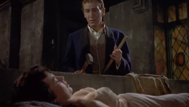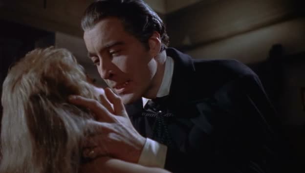 Il faut le dire, visuellement, la Hammer est en plein âge d’or, et c’est absolument sublime, avec ces décors gothiques, ses arrières plans peints qui donnent un charme indéniable à l’ensemble. Et comment ne pas parler bien entendu de Dracula, Christopher Lee en personne. Il est impressionnant et par moment terrifiant dans ce rôle. Chacune de ses apparitions est marquante, mais malheureusement beaucoup trop rares face au potentiel du personnage et de l’acteur. Christopher Lee ne reviendra pourtant pas au rôle de Dracula avant 1966 et Dracula Prince des Ténèbres, une nouvelle fois signée Terence Fisher. Le tournage s’était avéré plutôt pénible pour l’acteur, avec des lentilles qui l’empêchaient finalement de voir. Et alors que le film se traîne quelques longueurs que le spectateur peut facilement oublier s’il adhère à l’ambiance gothique du métrage, on pourra pester une nouvelle fois contre ce final, plutôt réussi finalement, mais beaucoup trop expéditif.