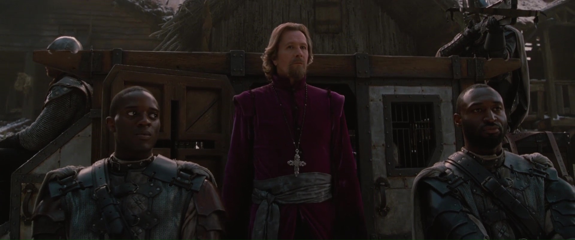 Déjà, Le Chaperon Rouge a pour lui une belle direction artistique et mise en scène. Certes on pourra dire que le métrage baigne dans une ambiance à la Twilight, juste parce qu’il y a un triangle amoureux et surtout que Catherine Hardwick filme les grandes forêts Canadiennes. Si le lieu de l’action est similaire, ce n’est pas pour copier ou continuer une mode qui fonctionne, mais de base, Le Chaperon Rouge, c’est un village et une forêt, donc il n’y a rien de choquant dans tout ça. Visuellement, c’est donc du plutôt bon boulot il faut l’avouer, la forêt est jolie, la mise en scène lisible et classe, les couleurs telles que le rouge ressortent souvent beaucoup à l’écran, et c’est un choix de la réalisatrice de mettre certains éléments en avant via la photographie et l’étalonnage de son film, et ça fonctionne, du moins pour moi. Mais passons maintenant au cœur du film, à savoir son histoire, ses personnages, et donc les acteurs. Là, on trouve immédiatement du bon et du moins bon. L’histoire prend des libertés avec le mythe, et c’est très bien. L’ajout du personnage du père Solomon, légèrement psychopathe sur les bords, est un bon ajout. L’ajout par contre d’un trio romantique fonctionne moins. Il tente d’ajouter de la substance à l’histoire, mais il faut dire que ce trio n’est pas aidé par les acteurs. Car autant Amanda Seyfried et Gary Oldman font du très bon boulot, autant Shiloh Fernandez (Deadgirl, Evil Dead) et Max Irons, ça ne passe pas. Le premier ayant juste le rôle de l’amour impossible pseudo bad guy et l’autre du gars souriant qui est fils de forgeron, et qui d’ailleurs pourra travailler le fer froid, chapeau !