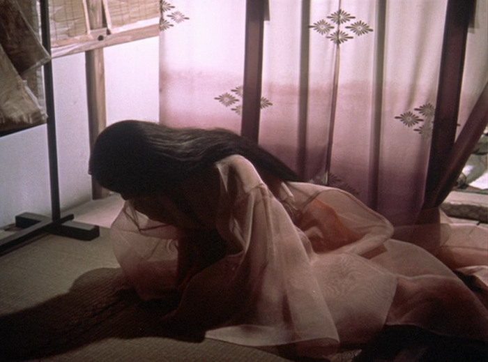 Bien sûr, Mizoguchi ne base pas tout son film sur ce brûlot politique, mais montre le parcours d’un jeune homme qui devra prendre seul ses décisions, hésitant continuellement entre révolte et soumission, une sorte d’adolescence et donc de passage à l’Age adulte, même si finalement la dernière scène montre que Kiyomori n’assume pas réellement son acte, ou commence juste à en mesurer les conséquences. Il faut d’ailleurs signaler l’exceptionnelle performance de Raizo Ichikawa (acteur de Kabuki, et le futur fameux Nemuri Kyoshiro de la série bien connue) qui campe avec aisance les différentes facettes de Kiyomori, de l’audace à la peur, de l’assurance à la fragilité. Autour de lui, deux figures féminines. La mère tout d’abord, ne pensant qu’au statut social et à l’argent. D’ailleurs Kiyomori commence sa révolte en faisant partir sa mère. A l’opposé, on trouve une jeune samouraï de classe inférieure, et pour une fois chez Mizoguchi leur amour est possible. Des figures de femmes bien moins travaillées qu’à l’habitude malheureusement.