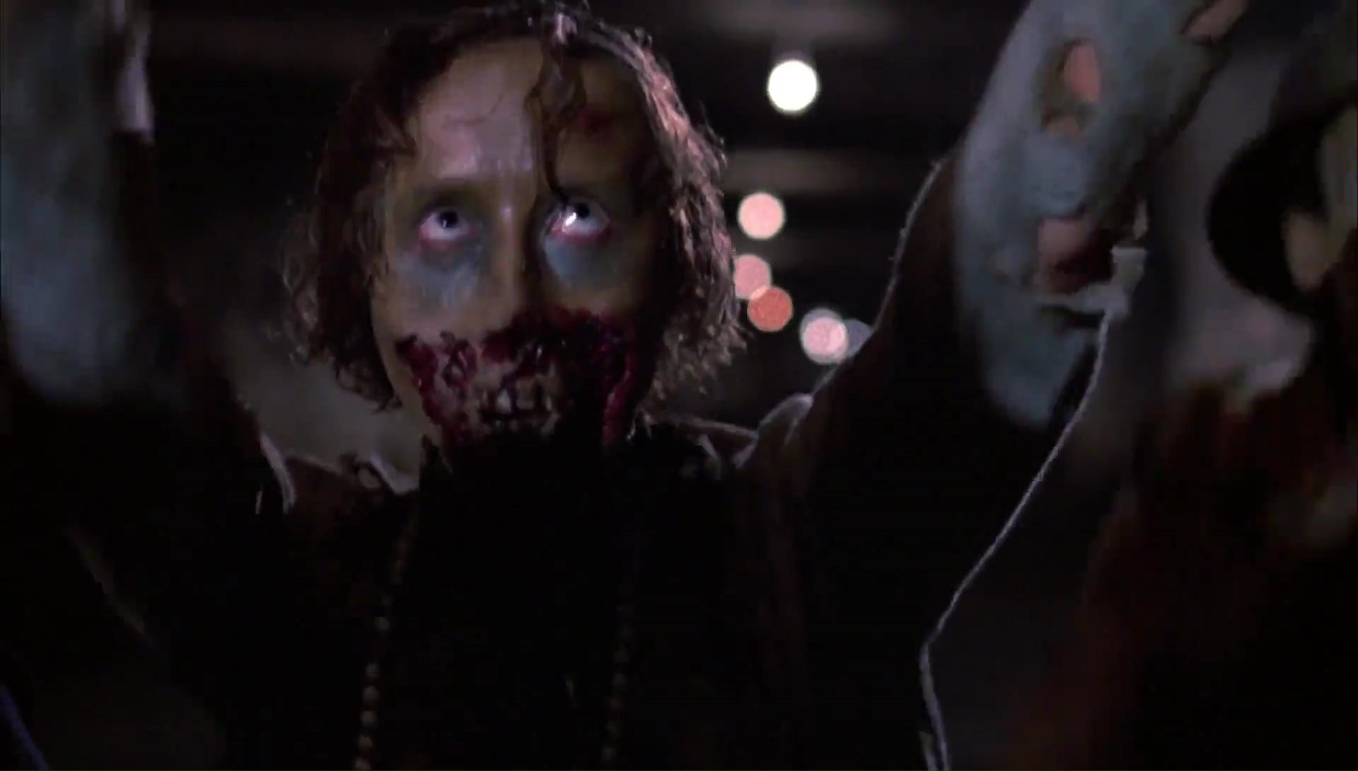 La menace zombie des deux précédents opus est donc souvent remplacée par la menace humaine, et le chef des militaires sera énervant. Le spectateur n’aura qu’une envie : le voir crever. Le contexte autour des personnages est hostile, le lieu qui leur permet de rester en sécurité ressemble plus à une prison qui les retient prisonniers les uns des autres. Et les zombies donc, le gore ? Là, il faut attendre la dernière demi-heure réellement, ce qui était le sujet de ma déception il y a 20 ans. Et pourtant, lorsque l’horreur pure et dure débarque, c’est un véritable festival, Tom Savini s’étant surpassé. C’est gore, ultra violent, impressionnant même par moment, et de nombreux moments resteront dans les esprits. Les effets spéciaux sont plus réalistes que jamais. Alors oui, à mes yeux, Le Jour des Morts-Vivants reste néanmoins plus faible que les deux précédents, mais en est la continuité logique, en se focalisant toujours plus sur des humains, ironiquement déshumanisés et courant à leur perte. Impressionnant lorsqu’il part dans l’horreur, intéressant dans son texte malgré il est vrai quelques clichés, il reste malgré tout un peu trop lent dans son intrigue, et c’est pour cela, malgré de gros défauts et de grosses qualités, que je lui préfère toujours Land of the Dead, continuant son message tout en retrouvant le côté divertissant de Zombie. Et puis avouons le, on reste des années lumières de Diary of the Dead et surtout de Survival of the Dead, qui eux étaient réellement mauvais.