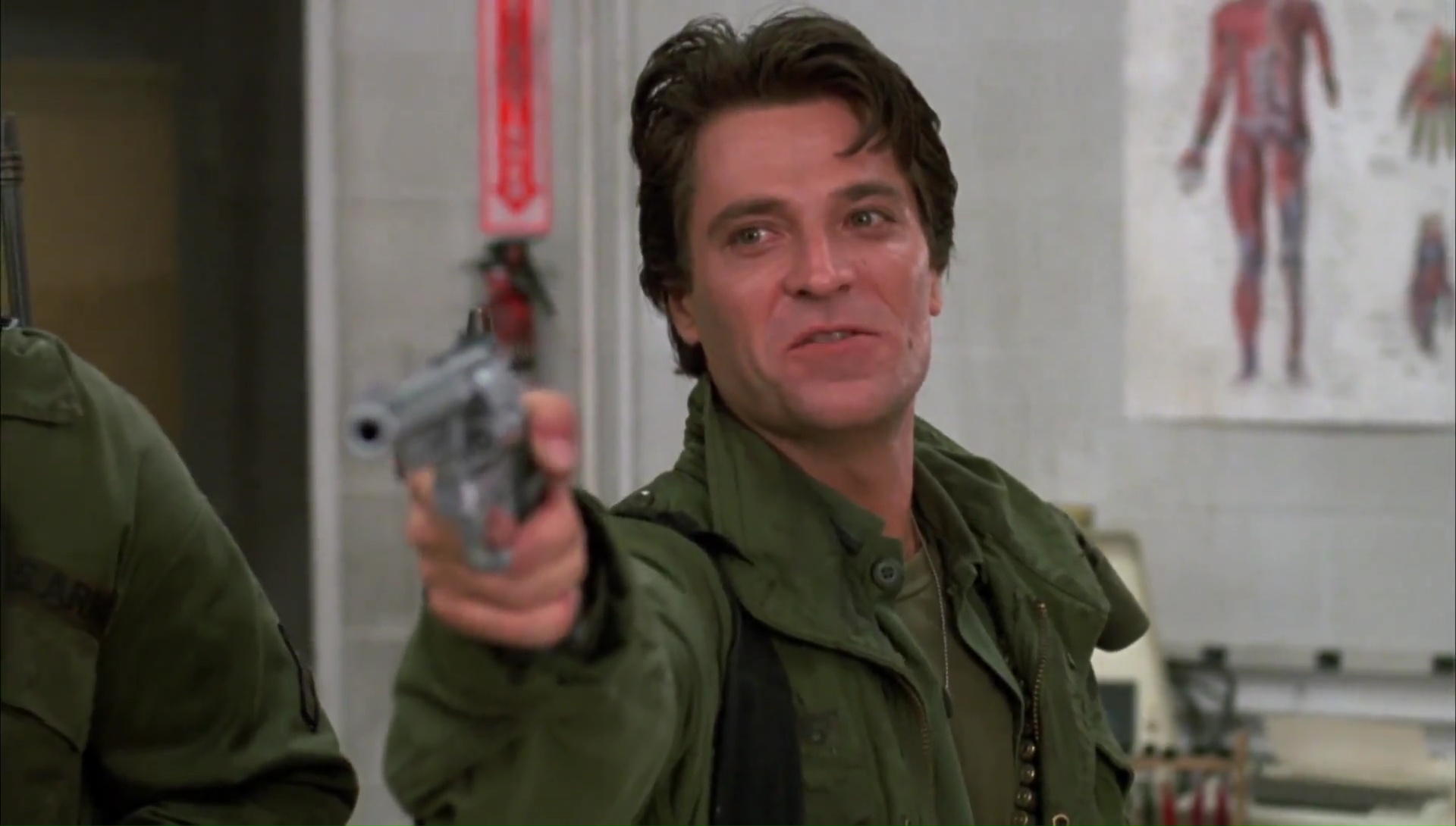 Romero nous présente ensuite ses personnages principaux lors d’une virée dans une grande ville totalement déserte jusqu’à l’apparition des morts-vivants. Le film annonce dés le début la couleur, le monde va encore plus mal qu’avant, les morts-vivants sont beaucoup plus présents et les survivants doivent se cacher. Romero fait le choix de se préoccuper d’un groupe de survivants, en apparence parfaitement organisé et réfugié dans un ancien silo à missiles, pour mieux s’amuser à le détruire de l’intérieur et nous montrer les pires aspects de l’être humain. Une lutte entre militaires et scientifiques, chaque groupe restant sur ses positions, les militaires ne se battant pas franchement pour la gloire et pour leur pays comme dans les nombreux films de l’époque, tandis que les scientifiques semblent au final un peu fous, sans morale, et donc, pas franchement responsables de leurs actions. L’humanité en prend encore un coup après La Nuit des Morts-Vivants et Zombie, mais Romero pousse le bouchon encore plus loin ici, un peu comme dans son beaucoup plus récent Land of the Dead (il faut savoir que beaucoup d’idées pour Le Jour… seront refusées par la production et qu’il les insérera donc dans Land). L’espoir ici ne viendra pas vraiment des humains… mais carrément des zombies. Oui oui monsieur, il fallait oser ! Alors évidemment, son message, contrairement à Zombie, a un peu vieillit, puisque si le message de Zombie est encore (voir même plus) d’actualité, nous sommes à présent habitués au message du Jour. Mais ne mentons pas, le message du Jour… reste malgré tout du pur Romero, et cela fait grandement plaisir.