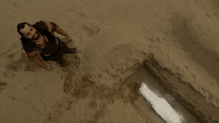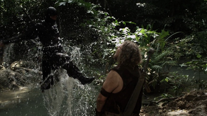 Le scénario est ultra basique. Mathayus, le Roi Scorpion, n’est plus roi. Il est devenu mercenaire depuis que sa femme est morte et qu’il a perdu son royaume. Une quête va lui être confiée par le Roi Horus et il va devoir faire équipe avec d’autres comparses (un teuton, une ninja) pour l’accomplir. Mais surtout, on cherche encore la cohérence et on a vraiment l’impression de quelque chose fait à la va-vite juste pour surfer sur un nom qui, sincèrement, n’a rien de reluisant dans l’absolu malgré un premier film sympathiquement fun. Ici, ça mélange divers royaumes qui n’ont rien à voir ensemble (en termes de temporalité j’entends), on se contrefout complètement de l’aspect historique de la chose, comme si les producteurs semblaient se dire que de toute façon, y’a que des gros débiles qui regardent ces suites bas de gamme. Sans parler des anachronismes à la pelle avec tout un tas de choses qui n’existaient pas à l’époque (coucou le parquet flottant, coucou le trébuchet). Le casting est ce qu’il est. Entre un Victor Webster, qui reprend le rôle de Dwayne Johnson mais sans le charisme, qui fait ce qu’il peut avec les moyens qu’il a, et ils sont faibles, des têtes connues pas bien inspirées et qui semblent s’en foutre un peu et attendent le chèque qu’ils sont venus chercher (coucou Ron Perlman), un Billy Zane en surjeu total car il semble n’en avoir plus rien à foutre, ça fait parfois un peu peine à voir. Alors oui, Temuera Morisson semble y croire, mais il est bien le seul. L’humour, via des punchlines aussi recherchées que le scénario, est souvent bien puéril, allant jusqu’à oser les gags à base de rots. Mais Le Roi Scorpion 3 est très bien rythmé, ne laissant que peu de place à l’ennui. C’est scène d’action sur scène d’action. Même quand ce n’est pas des batailles, les personnages se mettent sur la gueule entre eux, pour l’amour de la blague.