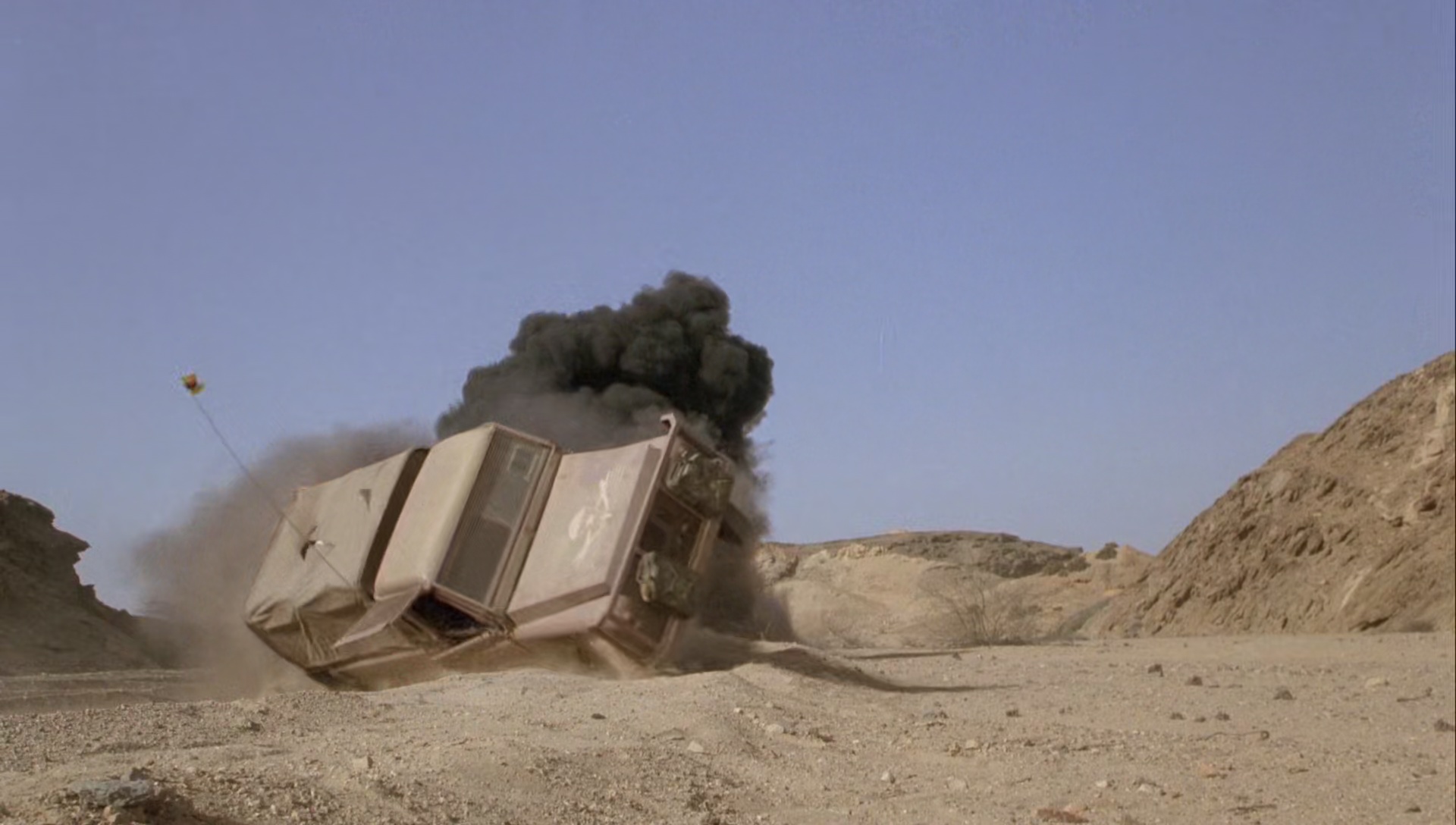 Si c’est primaire dans sa proposition de cinéma, on ne va pas se mentir, le film est hautement divertissant, sans temps mort, plutôt bien réalisé, généreux en action et en cascades (dont une bien dangereusement exécutée par Lundgren lui-même), très violent par moment, sans oublier une petite touche d’humour lors d’un passage (encore coupé lors de la sortie au cinéma en France à l’époque) où Lundgren rencontre un indigène alors qu’il est perdu dans le désert. En soit, le parcours de notre héros est on ne peut plus simple, une quête initiatique, où il va apprendre de nouvelles valeurs, changer de camp, tout en restant ce qu’il est : une machine de guerre. Et si le scénario n’est pas bien épais et souvent prétexte à des scènes d’action explosives (et bien sympathiques), on peut par contre saluer qu’il offre à Dolph Lundgren un rôle un poil plus développé que ses précédents rôles. Pas de Russe 100% méchant comme dans Rocky 4 ou de gentil vraiment très gentil comme dans Les Maîtres de l’Univers, ici, Dolph commence en méchant Russe qui s’infiltre dans le seul but d’éliminer la menace de son pays, avant d’être l’ami des Africains et d’être ce grand blond aux yeux bleus qui arrive à sourire. Avant de partir en guerre et d’exploser tanks et hélicoptères, encore une fois, faut pas abuser non plus et oublier le cahier de charge de la série B bourrine abreuvée à la testostérone. Un peu comme le fantasme sur écran d’une bande dessinée de sale gosse (car oui, Joseph Zito est un sale gosse, on ne pourra pas me dire le contraire après ces œuvres pour la Cannon), une certaine vision de cinéma qui se contente de placer un contexte politique pour placer un minimum de « réalisme » avant d’uniquement donner ce que le spectateur veut voir, du bourrin. Et de ce côté là, Le Scorpion Rouge a été fait avec le plus grand sérieux, ce qui lui permet de se hisser bien plus haut qu’un certain Rambo III, datant de la même année, et lui ouvertement nanar et raté. À noter qu’une suite vit le jour en 1994, sans Dolph.