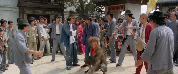 Mad Monkey Kung-Fu est teinté de pédagogie et de burlesque, éléments chères à Liu. Et lorsque Monkey revient une première fois en ville, se mesurer au gang du village, l’affrontement prend l’allure d’un Cartoon (la musique aidant), le jeune homme ridiculisant les bandits. Certains reprochent même au réalisateur de vouloir concurrencer le style Jackie Chan/Yuen Woo-Ping de Drunken Master dont il est vrai que Mad Monkey Kung-Fu partage quelques points en commun.