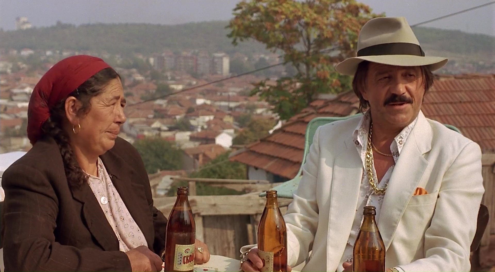 Un peu comme celle que prend le spectateur devant un tel film. Le film est après tout un réel drame, un drame qui prend son temps, autant pour dépeindre le peuple concerné, ses croyances, sa façon de vivre, que pour nous emmener là où il veut. Perhan vit avec sa grand-mère, guérisseuse du village qui a des pouvoirs, son oncle qui ne fait que parier dans des jeux truqués et donc se retrouve constamment acculé dos au mur, et sa jeune sœur qui a un souci de santé, une jambe plus courte que l’autre. Alors que Kusturica a à peine commencé à dessiné les contours de ce qu’il veut raconter, Le Temps des Gitans éblouit déjà le spectateur. Il faut dire que le film n’est pas avare en séquences folles et bruyantes, mais également en humour, et en poésie. Il suffit de voir Perhan demande la main d’Azra à ses parents, qui refusent, et celui-ci décide de mettre fin à ses jours en se pendant devant l’église, accrochant la corde à la cloche de celle-ci. Résultant du coup forcément d’une pendaison ratée et d’un magnifique effet yoyo (élément récurent du cinéma de Kusturica tiens, il y avait également la pendaison avec des collants dans Arizona Dream). Puis peu de temps après vint la fameuse scène de la fête dans le lac, où là, c’est clairement la musique de son fidèle collaborateur de l’époque Goran Bregovic qui fait le boulot, parvenant à rendre la séquence, entre beauté culturelle et lyrisme visuel (avec encore un motif récurent du cinéma de Kusturica, qui fait flotter sa caméra et ses personnages), réellement marquante, et même osons le mot, émouvante. C’est après cette séquence d’ailleurs que Kusturica place alors véritablement les rouages de son intrigue, en amenant Perhan en voyage avec Ahmed, gitan qui a fait fortune grâce à un procédé simple. Il achète des enfants pour en faire des mendiants et des voleurs en Italie. Ayant une dette envers la famille de Perhan, Ahmed accepte d’amener la jeune sœur dans un hôpital pour qu’elle se fasse soigner, et prendra Perhan sous son aile, lui montrant finalement les bases de la vie : l’argent est roi, et lui aussi, en jouant le jeu, peut avoir la belle vie.