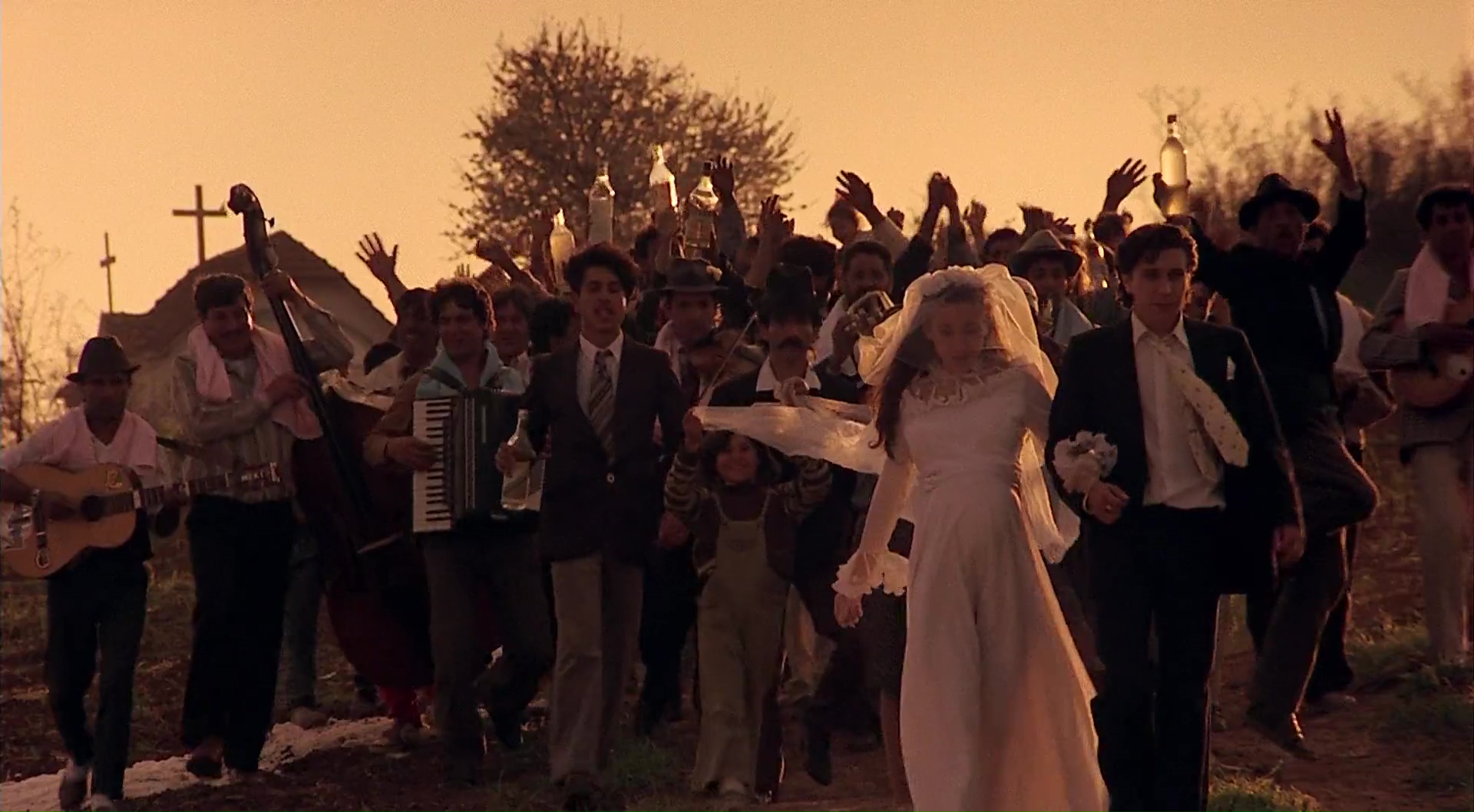 Bien entendu, comme dans toute tragédie, comme dans tout rêve, si c’est trop beau pour être vrai, c’est que ça ne l’est pas. Car Le Temps des Gitans, sous ses apparences de film bruyant, de film un peu fou et étrange, est avant tout un film sacrément sombre, voir amer par moment. Le destin de Perhan n’est pas franchement à envier, tant le jeune homme va dans un premier temps perdre le sens des réalités, en voulant devenir quelqu’un. Il reste néanmoins encore réaliste vis-à-vis de certains sujets (Ahmed et la fameuse maison qu’il doit lui construire), mais il est bien trop souvent aveuglé par l’argent, par son envie de réussite. Son retour dans son village pour retrouver Azra par exemple est un moment bien dur, lorsqu’il retrouve la jeune femme enceinte, et, persuadé que l’enfant ne peut pas être de lui, accepte de l’épouser à condition de vendre l’enfant une fois qu’il naitra. Durant son parcours, Perhan perd une part de son humanité, tout simplement. Mais quand il voudra la retrouver, il sera bien entendu trop tard, et tout cela ne peut que mal se terminer, pour lui, mais également pour tout ceux qu’il aime. Alors oui, il y a bien ce côté un peu magique, avec la grand-mère guérisseuse et les quelques pouvoirs de Perhan, mais cela n’en fait pas pour autant un film fantastique, ou un élément véritablement important (quoi que), mais cela permet d’ajouter en tout cas un peu de légèreté et de magie à un univers qui lui bouffe clairement ses personnages. Le film trouve clairement son équilibre entre ses genres, ses styles, et avance calmement mais sûrement là où il veut nous emmener, jusqu’à un final déchirant qui a parfaitement fonctionné sur moi. Oui, rien à redire, Le Temps des Gitans, c’est un grand Kusturica, un grand film tout court.