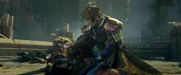 Et puis ca va s’enchainer ainsi jusqu’à la fin : scènes sérieuses, scènes enfantines, voire parfois mixer les deux, dans un bon gros joyeux bordel où vont se mêler pêle-mêle une ville d’iles flottantes (pas le dessert hein), tribu d’hommes poissons semblant sortir d’un mauvais bis italien, yeux d’un vieillard permettant de lire l’avenir, cigogne volante géante façon Green Snake version 2016, lancer de poulpe couard, mille-pattes géant que n’aurait pas renié le bousin Le Choc des Titans version Leterrier, troll gargantuesque, armures en or kitchos tout droit sorties des Chevaliers du Zodiaque, et même un petit passage lorgnant du côté du Space Opera. Un vrai fourre-tout ayant quelque part un côté jouissif pour l’amateur de nawaqueries que je suis, mais qui sincèrement semble plutôt être la répliques chinoise du Gods of Egypt de Alex Proyas. Et cette comparaison n’est pas un compliment…