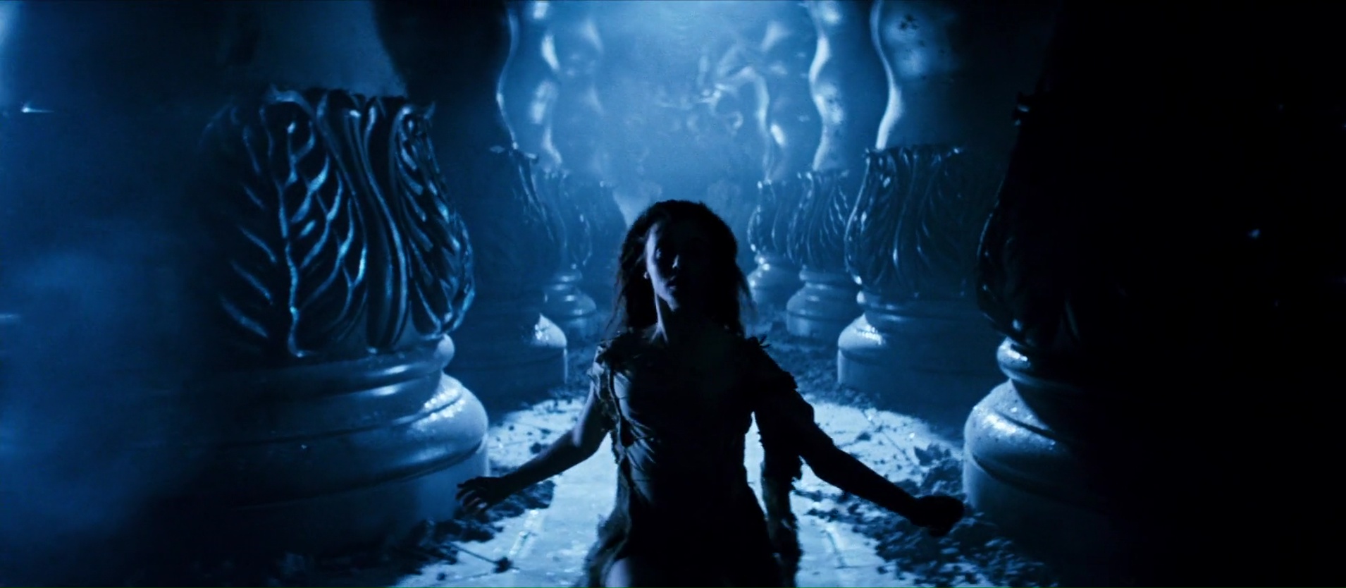 Mais bref, je suis ici pour parler de la seule version que j’ai eu devant les yeux, à savoir le montage Européen. Et si Legend n’est pas parfait, loin de là, il faut avouer que visuellement, Scott a fait ce qu’il voulait, et ce qu’il voulait, c’était nous émerveiller. C’est splendide. Chaque plan est étudié, chaque effet de lumière parfaitement maitrisé, et ça nous décolle la rétine. C’est magnifique, tout simplement. Scott et son directeur de la photo Alex Thomson (Excalibur, L’Année du Dragon, Alien 3) sont en pleine possession de leurs moyens, et ça s’en ressent. Il est rare de voir un film aussi féérique, d’un plan à l’autre, que cela soit dans les moments posés ou dans les moments plus sombres, dans l’antre de la bête, appelée Darkness. Visuellement, c’est un sans faute. Musicalement, un peu pareil, Jerry Goldsmith livre une partition magique, convenant toujours aux images, voir les sublimant par moment. Scénaristiquement, il y a par contre à boire et à manger. Si l’on prend l’intrigue dans ses grandes lignes, Legend a tout du conte de fée, et n’ajoute rien à la formule. C’est cousu de fil blanc, prévisible, et on pourra même dire que ça manque de rebondissements. Un grand méchant nommé Darkness qui envoie ses esclaves kidnapper des licornes avant que le soleil ne se lève plus jamais, et qui capture une princesse par la même occasion, et tente de la faire passer de son côté. Et à côté bien entendu, un héros, proche de la nature, qui va devoir entreprendre un voyage pour libérer sa dulcinée avec l’aide d’autres créatures magiques. Et dans les faits, c’est malheureusement un peu tout. Heureusement, et ça, l’enfant que j’étais ne le voyais pas à l’époque, Legend a quelques éléments en fond immédiatement plus intéressants. Notamment en ce qui concerne la princesse, jouée par Mia Sara (dans son tout premier rôle), qui évite finalement d’être la princesse qu’il faut sauver et qui n’est pas toute blanche. Certains éléments arrivent par sa faute, et d’autres grâce à elle. Elle n’est pas passive donc. Excellent point, qui donne un peu de profondeur à une intrigue extrêmement simpliste et peu riche en rebondissements.