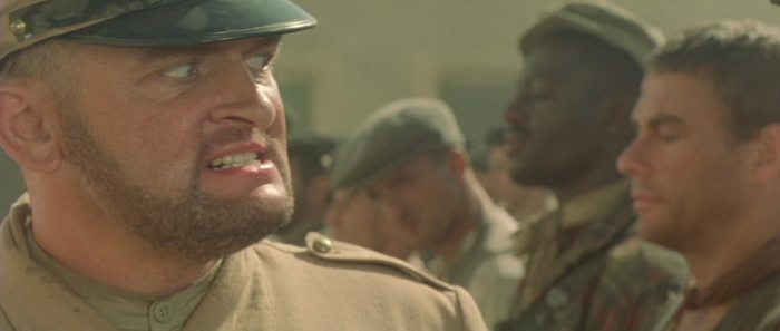 Reste que le film se suit sans véritable ennui : comme je l’ai déjà dit, l’ensemble est suffisamment exotique pour dépayser (ok, le désert n’est pas filmé comme dans LAWRENCE D’ARABIE, mais quand même…) et c’est finalement assez rythmé pour convaincre. Concernant Van Damme, il faut préciser qu’ici il ne combat jamais à mains nues (hormis un petit combat de boxe au début). C’est suffisamment original pour être noté : pas de karaté, pas de grand écart (mais ça s’est fini), seulement des coups de feu façon Légion Étrangère et pas mal de morts autour… Dans son rôle de légionnaire il se permet également d’interpréter vraiment un rôle, oui ici Jean-Claude Van Damme joue la comédie. Certains apprécieront, d’autres moins, en tout état de cause Van Damme fait des efforts. A noter la participation du multiple champion du monde de boxe thaï Dida Diafat, qui signait là ses premiers pas au cinéma sept ans avant CHOK-DEE.