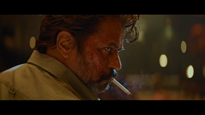 Personnellement, j’ai adoré Leo pour les mêmes raisons que j’avais adoré RRR, c’est un film too much, excessif, qui va toujours plus loin à chaque nouvelle scène d’action. Toujours plus de violence, toujours plus d’idées folles, pour les amateurs de cinéma bourrin, débordant de testostérone, Leo est un sacré plaisir régressif. Vijay massacre des gangsters par centaines (oui oui des centaines), casse des bouches à coups de marteau, ouvre des cranes à coups de hache, égorge, casse des poignets et utilise tout ce qu’il a sous la main pour détruire ses adversaires : chaises, verres mais aussi gentes, pots d’échappement, tout est bon pour casser du vilain, des vilains d’ailleurs qui ont tous des têtes de bouchers. Parfois il envoie aussi des coups de pied volants comme Neo dans Matrix ou flingue avec son six coups comme Clint dans les Sergio Leone. Oui, Leo n’a pas de limite dans sa volonté de proposer un spectacle jouissif, quitte à flirter constamment avec le grand guignolesque. Générosité qui atteint son point culminant lors de la scène de danse du milieu de film où des centaines de figurants accompagnent Vijay dans sa chorégraphie sur le tube Naa ready. Une scène qui aurait fait pleurer de joie Michael Jackson s’il avait été encore vivant. Je me demande encore d’ailleurs comment ils ont réussi à synchroniser autant de monde sur un même plan. Toute la deuxième partie du film est du même acabit avec une baston générale géante dans un hangar, filmée en partie en plan séquence à l’aide d’un drone et un final qui repousse les limites du carnage cinématographique. Cette fois c’est pas Michael Jackson qui aurait été fier mais Chang Cheh. Ajoutez à cela la présence de Sanjay Dutt en grand bad guy, monstrueux de charisme, prototype du parfais méchant de cinéma et une prestation tout à fait honorable de Vijay, habituellement plus connu pour ses talents de danseur (c’est sans doute le meilleur dans ce domaine dans toute l’industrie indienne) que pour ses talents d’acteur et vous obtenez peut-être la parfaite série B. Une série B aux allures de blockbuster et hautement chargée en curry et autres épices mais quel spectacle ! Et c’est aussi ça la force de Leo : sa saveur. Est-ce que ce nouveau cinéma de genre indien apparu il y a tout juste quelques années avec des films comme La Légende de Bahubali, RRR, KGF, Kaithi, Vikram ou Leo inventent quelque chose ? Pas vraiment en fait, ni dans leur façon de concevoir l’action, ni dans leur langage cinématographique. Ces films inventent quelque chose, mais à travers leur esthétique, leurs acteurs, leur utilisation de la musique. Ces films apportent une toute nouvelle saveur et sont clairement dépaysant, proposant une véritable alternative au cinéma Coréen qui tourne en rond, au cinéma Sino/Hongkongais prisonnier de la censure et au cinéma Américain qui semble bien avoir du mal à tourner la page du chapitre super-héros.