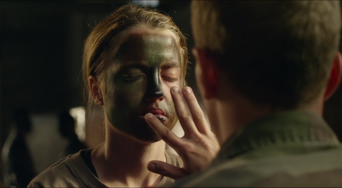 On peut même dire en cherchant loin que le réalisateur a directement cherché à surprendre en inversant les rôles, en faisant de l’homme le jeune homme introverti et de la femme la combattante pleine de punchlines. On pourra bien dire que dans sa seconde partie, Les Combattants abandonne un peu de son originalité lorsque les personnages partent en entrainement militaire. Les situations sont un peu plus prévisibles, et le métrage part dans une direction un peu plus attendue, celle de Madeleine qui avec son comportement et sa mentalité, a à redire sur l’entrainement, la mentalité des militaires, et la logique tout simplement de ce qu’on leur apprend. Heureusement, cette partie, sans doute moins emballante mais nécessaire et plaisante, amène à un dernier acte bien plus réussi, et qui pour le coup, arrive clairement à surprendre et m’aura même impressionné lors de certains moments, parfois extrêmement simples il est vrai (quelques déambulations en forêt), et parfois pour le coup vraiment surprenants et plus ambigus, du moins au début. Et Thomas Cailley semble bien maîtriser l’ensemble de ses situations, livrant même quelques plans glaçants sur la fin, avant de boucler son film avec une tendresse envers ses personnages, nous ramenant alors quelques scènes en arrière. Finalement, ce cheminement, parfois classique, parfois osant des choses, aura bien fait évoluer les personnages, qui par la force des choses, se ressemblent un peu plus qu’ils ne le pensaient et ont appris à ce connaître en voyant au-delà de la simple image qu’ils avaient l’un pour l’autre au premier regard. Et comment ne pas achever cette chronique sans un petit mot pour le son, et notamment la musique, excellente du métrage et signée à trois. Le thème de fin tourne souvent chez moi à présent, me rappelant cette aventure que je viens de suivre.