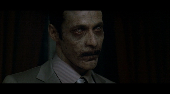 S’il y a quelque chose qu’on ne peut pas reprocher à Les Dents de la Nuit, c’est son dynamisme. Passée la mise en place qui aurait mérité d’être raccourcie, quand le film est lancé, on ne l’arrête plus. Le film ne se prend jamais au sérieux, personne n’y a peur du ridicule, et on va assister à une avalanche de gags. Certaines scènes et/ou situations sont vraiment excellentes (Bloody Chantal, certains effets de style pour cacher les dents des vampires), d’autres sont vus et revus (la parodie du Titanic) ou juste complètement ratés (le coup du chien). L’aspect parodique, dont le film ne se cache jamais, ne marche pas non plus tout le temps. Les réalisateurs empruntent aux Nuls, aux Monty Python, à l’humour british plus récent parfois même (Shaun of the Dead est passé par là), sans jamais atteindre ses inspirations. C’est souvent bas du front, parfois pipi caca, souvent décalé, mais il y a un tel enthousiasme et une telle bonne humeur que pas mal de blagounettes font leur petit effet jusque dans les effets gores. Les réalisateurs y vont avec leurs gros sabots sur les blagues sur les blondes, sur les vampires, sur les références cinématographiques (Le Bal des Vampires, Blade, Une Nuit en Enfer, …), mais il y règne un tel joyeux bordel qu’il est clairement possible d’y passer un bon moment. Le côté absurde et déjanté est assumé jusqu’à la scène finale complètement WTF (le livre de sorts). Alors il est certain que pour avoir une très bonne blague, il faut s’en farcir 3 bien plus douteuses, voire complètement ratées, mais couplé à une réalisation plutôt réussie, aussi bien au niveau des décors, des SFX ou des maquillages, Les Dents de la Nuit n’est pas le film catastrophique annoncé. Il est même plutôt sympathique dans son genre.