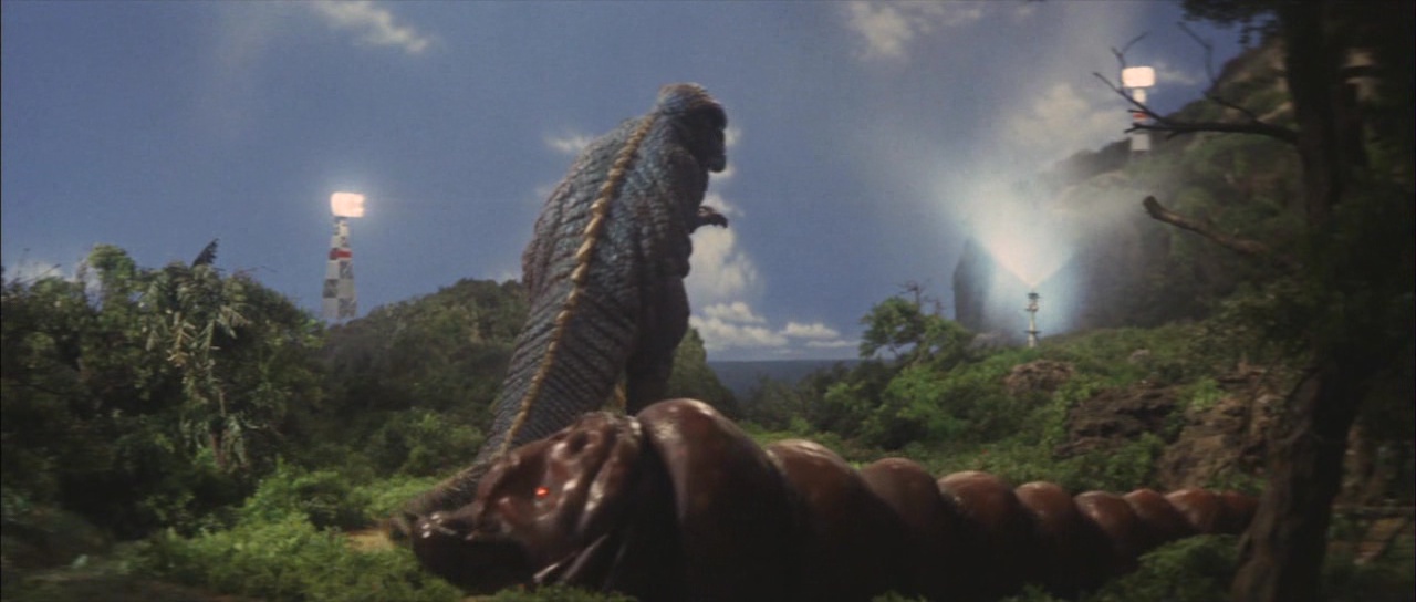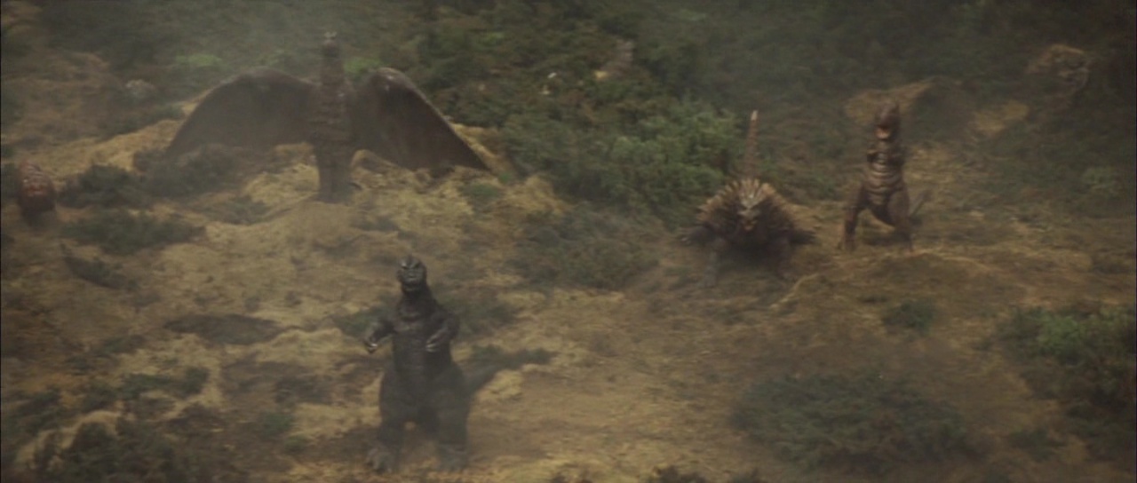Le Kaiju Eiga rapporte de moins en moins d’argent et de moins en moins de spectateurs dans les salles. Au lieu de se remettre en question, la Toho décide de livrer un ultime opus, un au revoir pour les fans. Si il y a moins de spectateurs, ça n’a pour eux rien à voir avec la qualité des deux précédents films, Ebirah et Le Fils de Godzilla. Bon heureusement pour le spectateur, lorsqu’ils décident de faire un ultime opus, ils ne font pas les choses à moitié. Honda Ishirô revient à la mise en scène et sera un des deux auteurs du scénario, Ifukube Akira revient également à la musique. Mieux, le ton enfantin des précédents fou un peu le camp, et on retourne à la place à la science fiction. Car dans ces grandes lignes, Les Envahisseurs Attaquent ressemble à deux gouttes d’eau à Invasion Planète X qu’avait signé Honda 3 ans auparavant. Mais attention, plutôt que de faire une redite, Honda améliore son propos. Le rythme se fait beaucoup plus soutenu, le film ne perd pas de temps alors qu’il ne dure même pas 1h30, les Kaijus s’insèrent beaucoup mieux dans l’intrigue, et encore mieux, on a l’impression de voir un Godzilla Final Wars 35 ans avant et avec 40 minutes de moins au compteur. Car ici, nos envahisseurs vont se servir des Kaijus dés le début, en les contrôlant pour les envoyer détruire la Terre. Oui comme dans Final Wars. Et du coup, c’est un vrai spectacle, car des monstres, il y en a. Première vraie réunion au cinéma, l’on trouvera Godzilla bien entendu, Rodan (ou Radon au Japon), Mothra dans sa première forme, Anguirus que l’on n’avait pas revu depuis Le Retour de Godzilla en 1955, Manda, Gorosaurus, Kumonga que l’on découvrait juste l’année précédente, Baragon, Varan, et bien entendu King Ghidorah en ennemi mortel final.