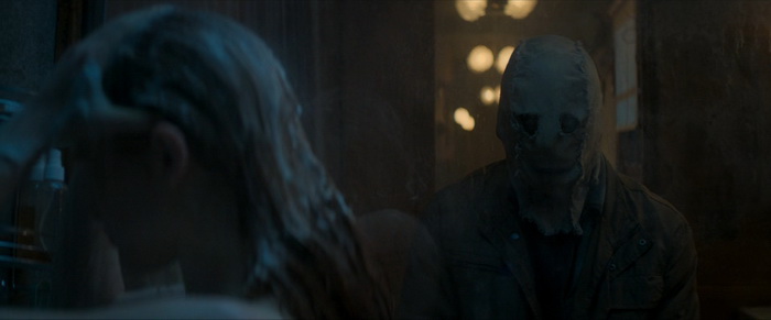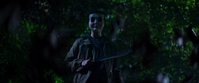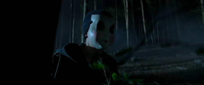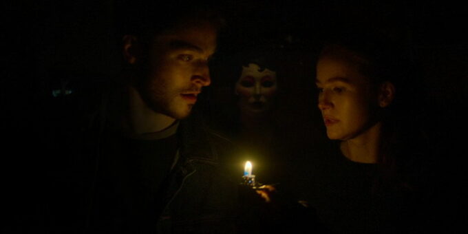 Renny Harlin utilise absolument toutes les ficelles connues de ce genre de films. Bruits hors champs, silhouettes qui passent dans le fond lorsque les personnages sont au premier plan (et inversement), protagonistes qui se sentent observés, les plombs de la maison qui sautent, le fameux endroit isolé où le réseau est instable et où tout le monde dévisage les héros quand ils arrivent, jumpscares putassiers qu’on voit venir à des kilomètres, de héros qui ne savent pas courir et qui se cassent la figures au bout de trois pas de course… Certains détails sont également prévisibles à l’avance, et on sait par exemple pertinemment que, lorsqu’on apprend que le héros est asthmatique, ce dernier finira au moment où ne le faut pas par perdre sa ventoline. Pourtant, même s’il plonge la tête la première dans tous ces clichés, il arrive malgré tout à créer une certaine ambiance qui, même si elle ne fera sans doute pas frémir les plus chevronné, fera son petit effet sur les novices de ce genre de film ou les plus jeunes. Et il y a d’ailleurs de grandes chances que cette trilogie se destine avant tous aux ados qui ont grandi avec certaines productions Blumhouse qui ont envahis les écrans dans les années 2010. Et il ne faut pas être un spécialiste du cinéma horrifique pour se rendre compte que bon nombre de scènes sont des copiés collés de ce qui a déjà été vu, aussi bien dans le home invasion que dans les bobines de tueurs masqués. Mais on aura beau penser ce qu’on veut de Harlin et de sa carrière en dents de scie, il sait faire ce qu’il faut pour que son film ait de l’allure. bien que l’ensemble soit souvent un peu trop sombre (nuit oblige), la photographie est plutôt classieuse, certains plans sont réellement bien pensés et il arrive à maintenir une certaine tension malgré le manque de contenu de cette « introduction » de 1h30 qui n’a au final pas grand-chose à raconter. On notera également un excellent travail au niveau de la bande son, aussi bien les bruitages inquiétants placés au bon moment que la musique d’ambiance. Et puis mine de rien, même si le film ne nous a pas raconté grand-chose, le « A suivre… » qui arrive juste avant le générique de fin pourrait vous donner envie de voir la suite pour savoir ce qu’il en retourne. C’est en tout cas ce qu’il s’est passé sur moi.