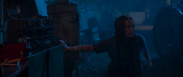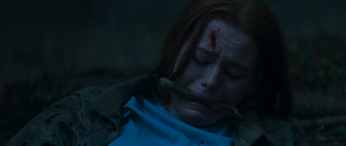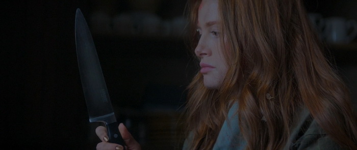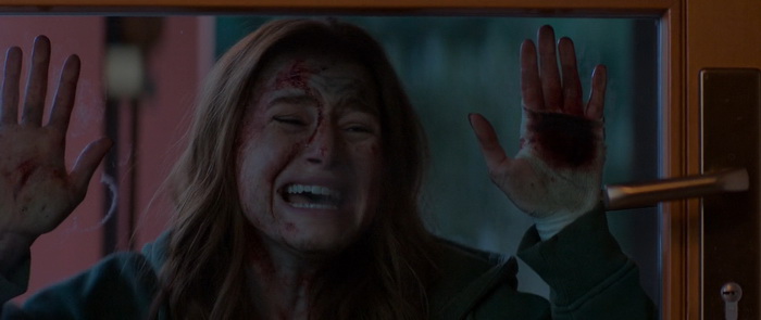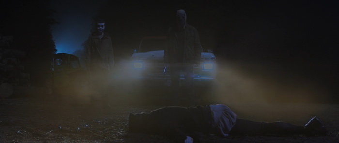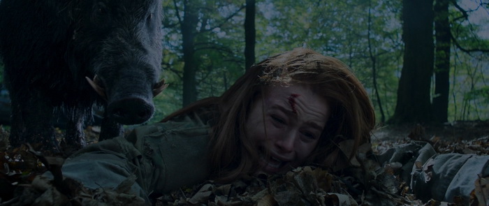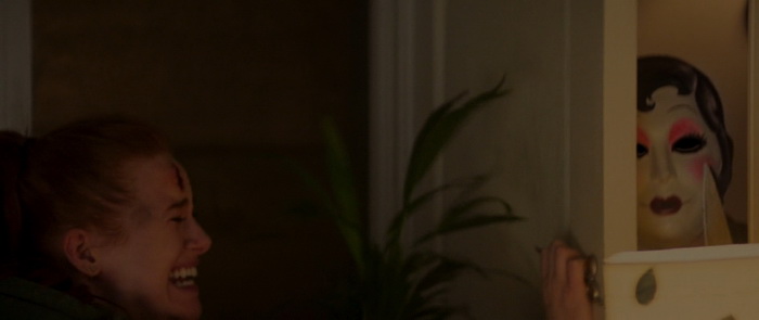 La tension est plutôt bien gérée avec une fois de plus un bon travail sonore, mais aussi d’éclairage. Même si on regrettera ces couleurs fadasses comme ça semble être la mode depuis pas mal d’années maintenant, la photographie est sympathique et certains plans sont même réellement travaillés. Mais punaise, les couleurs, mettez des couleurs, surtout quand on a comme décors la campagne, les forêts et ce vert des arbres qui peut rendre très bien à l’image. Le premier film souffrait moins de ce défaut. Madeleine Petsch semble meilleure que dans le premier film et arrive même à être convaincre dans ses émotions, essentiellement la peur et la parano. Elle n’a au final pas grand-chose d’autre à faire que crier, courir, montrer son angoisse et sa peur, mais elle s’en sort très bien à ce niveau-là. Alors, oui, il y a des incohérences, comme notre héroïne qui court bien vite pour quelqu’un qui a pris un coup de couteau dans le ventre ; Oui, il n’y a étonnement pas grand monde dans l’hôpital où, normalement, la surveillance des patients est H24 ; oui, nos trois tueurs ont tendance à se téléporter en fonction des besoins du scénario ; oui notre part en courant plutôt que de d’achever son agresseur lorsqu’elle le blesse enfin. Et puis il n’y a que deux policiers dans cette ville ? Mais au final, ce sont des problématiques qu’on retrouve dans quasiment tous les films d’horreur et si on commence à en tenir vraiment compte, plus rien n’aurait de sens dans aucune bobine du genre. Par contre, difficile de comprendre d’où sort cette scène avec le sanglier. Certes, c’est fun, c’est improbable, mais qu’est-ce que ça vient réellement faire ici ? Aucune réelle explication, d’où il sort, pourquoi il est là, si ce n’est des marcassins dans un flashback et une petite fille qui dit qu’elle va leur apprendre à faire plein de choses. Au final, ce chapitre 2 amène certes quelques très légers éléments de réponse, mais le film ne répond toujours pas réellement aux questions « Qui ? » et « Pourquoi ? ». Soit tu le fais, soit tu ne le fais pas, mais si tu commences à le faire, essaie quand même de donner quelques billes.