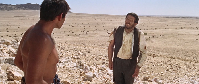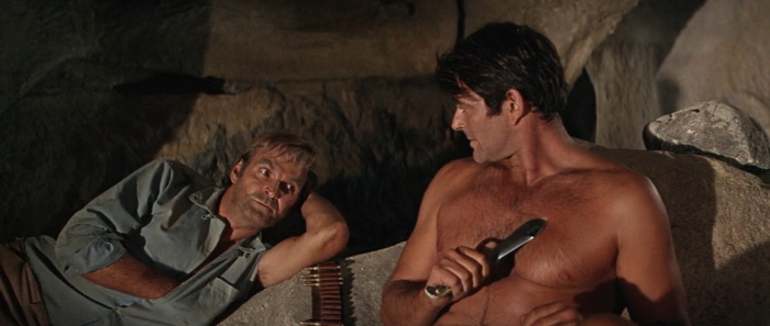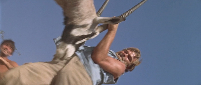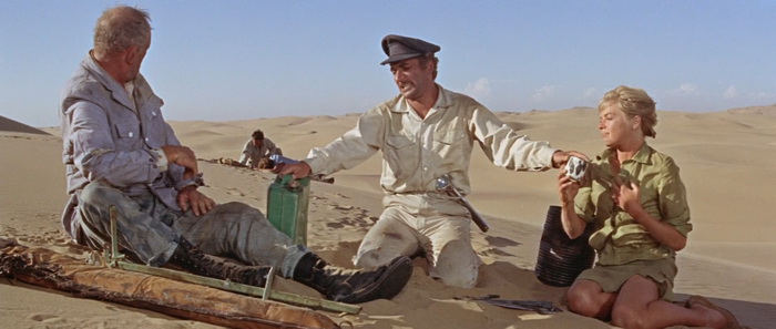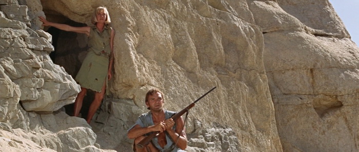 Le réalisateur Cy Enfield et l’acteur/producteur britannique sont des amis de longue date et ont collaboré à plusieurs reprises dans les années 50 et 60. En 1964, ils pondent la grosse production Zoulou qui est un succès international (environ 1M de spectateurs en salles en France). Pour leur film suivant, ils décident dans un premier temps d’adapter le premier roman de Wilbur Smith, When the Lion Feeds, qu’ils aimeraient également tourner en Afrique, mais ils se pencheront finalement sur The Sands of Kalahari (1960) écrit par William Mulvihill. Malheureusement, Les Sables du Kalahari est un gros échec, mettant un terme à la collaboration entre Stanley Baker et le réalisateur Cy Endfield. Pourquoi le public ne s’est pas rué dans les salles ? Difficile à dire car Les Sables du Kalahari a bien des atouts pour lui et il est même devenu au fil des années un petit film culte pour pas mal de monde semble-t-il. Une chose est sûre, c’est que son arrivée chez nous en blu-ray chez Rimini Editions est l’occasion de se plonger dans ce bon survival en territoire aride.