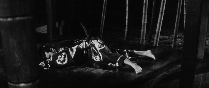 Les rôles sont complètement inversés et ce sont les deux femmes qui meurent. D’ailleurs, en clin d’œil, Kaneto Shindo commence son Kuroneko par un plan sur un champ de roseau. Mais là où Onibaba sombrait dans la relation bestiale à base de sexe et de haine, Kuroneko se fait sensuel. Sensuel et complexe. La vengeance sera-t-elle plus forte que l’amour. Shindo apporte les deux réponses. Toutes aussi tragiques l’un que l’autre, bien sûr. Et par-delà le cruel dilemme intérieur qui ronge les protagonistes, on retrouve un thème habituel dans la filmographie de Kaneto Shindo. En effet sous ces aspects de kaidan eiga, Kuroneko se veut aussi une critique sociale, où le samouraï n’est pas montré sous son côté doré d’apparat, mais plutôt comme lâche, violent et arriviste.