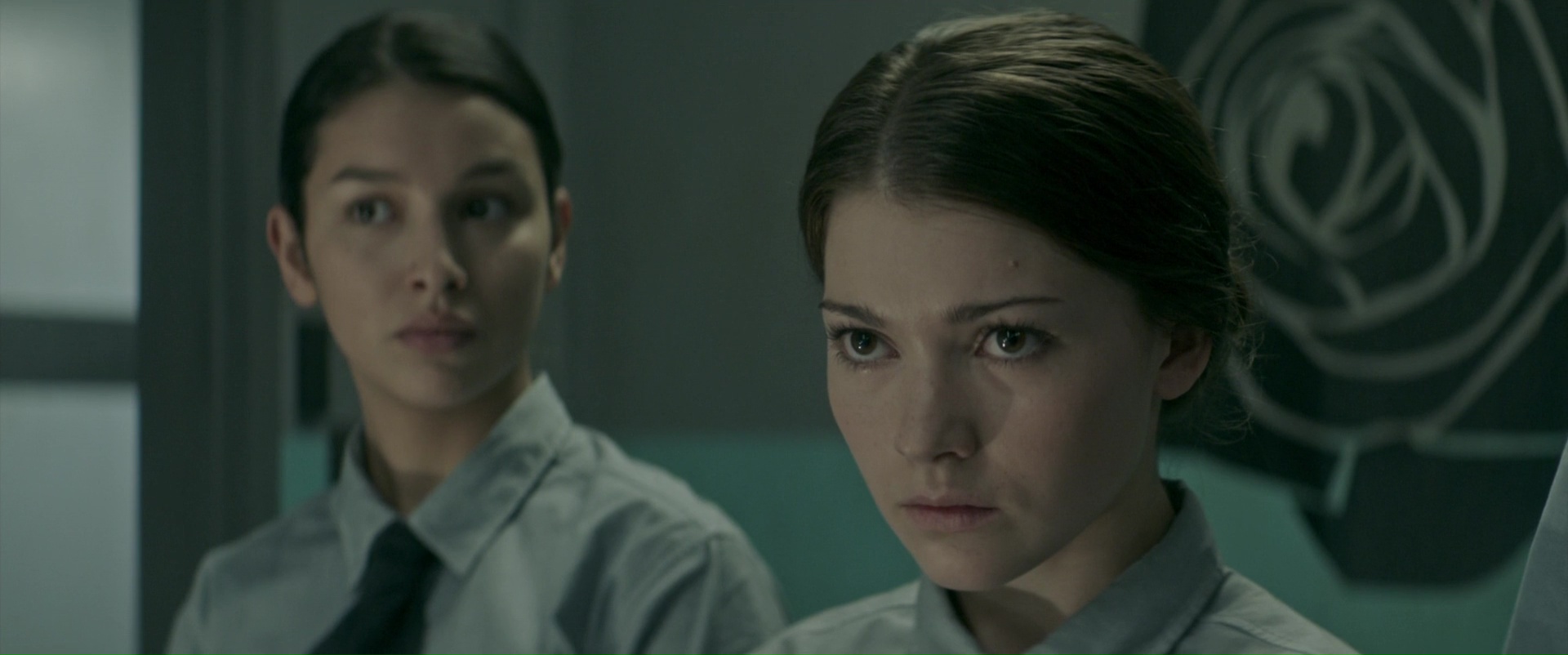 On comprend très rapidement que quelque chose cloche. Entre ses rares gardes qui ont un look de truands Russes avec leurs lunettes de soleil même en intérieur, ces caméras de sécurités placées un peu partout, le fait que nos jeunes femmes, adolescentes, ne savent pas du tout lire. Et puis, si rien ne clochait, il n’y aurait pas de film, aussi. Nos personnages, du moins les deux principaux, s’en rendent également compte, lorsqu’elles refusent de prendre leurs vitamines un soir, et comprennent qu’il ne s’agît pas de vitamines, mais d’un puissant sédatif. Sans rien savoir du pourquoi du comment, de cette organisation, de ce lieu, et du monde extérieur, elles vont se mettre en tête qu’il va falloir s’échapper. Tout en se méfiant des autres, conditionnées et obéissantes, ne sachant plus réfléchir par elles-mêmes car la libre pensée n’a pas sa place en ces lieux, mais aussi des deux seuls visages que cette organisation aborde, celle de la sévère Madame Brixil et du docteur Miro. Bref, un constat assez affligeant pour les personnages secondaires, mais malheureusement totalement réaliste. Oui, quand on nous apprend à être un bon mouton et à obéir, dur de sortir des rangs. Et oui, parfois, les pires ordures se cachent derrière les visages aimables, les voix douces, les paroles rassurantes. Alarmant donc, réaliste, froid également, dans son propos, sa mise en scène, son rythme. Et c’est pour ça que ça fonctionne, Level 16 se fixe une ligne de conduite, avec un but, et s’y tient jusqu’à son final. Tout n’y est pas parfait, mais l’intention est plus que louable, et par moment, le métrage parvient même à s’avérer étouffant, même lorsque l’on se doute un peu de ce qui va venir après, ou que l’on se retrouve avec une ou deux lignes de dialogues un peu clichées. On n’y échappera pas.