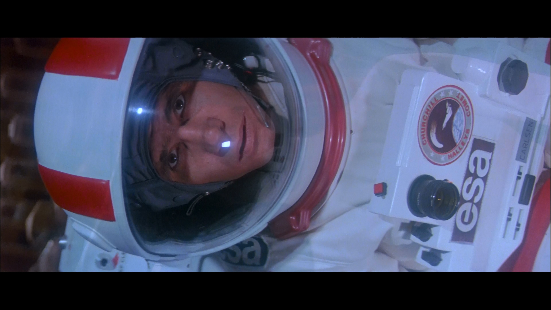 Un tournage compliqué, qui dépassé les délais (5 semaines de retard). Mais on le sait, Lifeforce fut un gigantesque échec au box office, fut critiqué par la presse, mais également par les scénaristes et par Colin Wilson, auteur du livre. Pourtant, ce n’est pas si mauvais, loin de là. Très ambitieux, trop ambitieux même sans doute pour un film qui, au final, ne reste qu’une petite série B, mais une série B généreuse. Cela s’en ressent jusque dans son côté fourre tout. Ici donc, l’intrigue nous amène dans l’espace, où le vaisseau Churchill (dans un futur proche à présent passé) part explorer un vaisseau qui semble être caché dans la tête d’une comète. Les cosmonautes se rendent donc dans le vaisseau, explorent, tombent sur des créatures qui semblent mortes depuis longtemps, et finalement, vont trouver trois corps qui semblent endormis, des organismes venant d’ailleurs mais à apparence humaine, deux hommes et une femme. Ah Mathilda May, que l’on aime ou déteste Lifeforce, il faut avouer que l’on se souvient majoritairement du film pour la jeune femme, qui bien que peu présente, le parcourt nue dans 90% de ses scènes. Ça et le thème musical signé Henry Mancini, qui donne un côté fantaisiste au métrage, l’éloignant de la science fiction horrifique. Pourtant, l’horreur arrivera, et Lifeforce, passé cette ouverture d’une dizaine de minutes fort sympathique, se disperse et part rapidement dans tous les sens. La suite se déroule sur Terre, et immédiatement, le ton semble changer. De film d’ambiance se déroulant dans l’espace, privilégiant les plans larges, les éclairages vifs, le mystère, Lifeforce effectue un sérieux virage qui en fait un film hybride, se changeant alors, comme le titre du roman l’indique, en film d’horreur mettant en scène des vampires de l’espace, asséchant les corps de leurs victimes, qui reviennent à la vie deux heures après, ressemblant à des momies, et ayant à leur tour besoin de se nourrir d’énergie vitale pour espérer retrouver une forme humaine normale. Et au départ, ça fonctionne bien, Hooper sachant ce qu’il fait, et sa mise en scène restant classe.