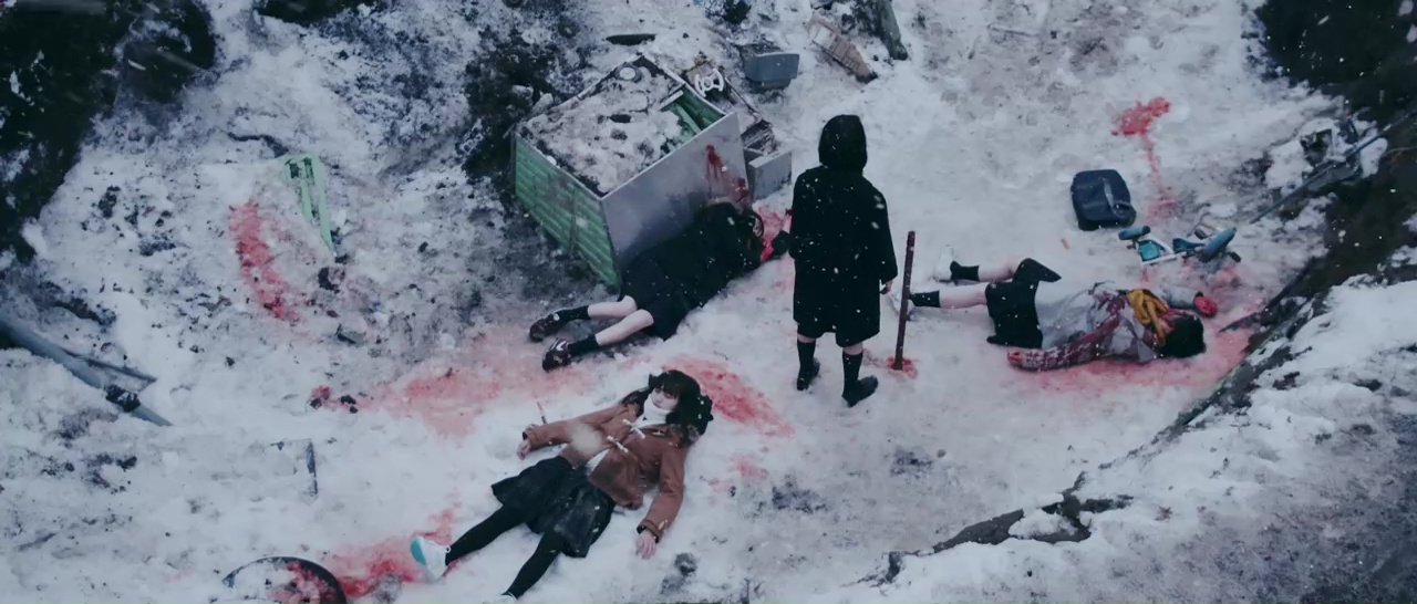 Les films dans la neige, c’est tellement rare que dés que l’occasion se présente, j’y cours. Oui, la neige au cinéma, c’est cool, c’est joli. La neige dans la vraie vie, ça fait scroutch sous les pieds, mais ça m’emmerde, car après, ça fond ou pire, ça gèle. Le film du jour s’appelle donc Liverleaf dans sa version internationale, Misumisô dans son pays d’origine, le Japon. Adaptant comme toujours un manga, le film a déjà un bon point pour lui, à savoir un réalisateur qui ose, sait maitriser sa caméra, et n’a pas peur des débordements sanglants. Je vous avais parlé de lui il y a quelques temps via son opus de 2014, le film certes bancal mais intéressant Puzzle. Et en en 2018, le revoilà, encore une fois pour nous parler de harcèlement scolaire, mais ce coup-ci sous la forme d’un film de vengeance tout ce qu’il y a de plus classique. Pendant 1h30 en tout cas. Et Liverleaf, c’est l’exemple même qui prouve que classique ne veut pas dire mauvais, tant que l’on sait ce que l’on fait. Et Naitô Esuke sait ce qu’il fait. C’est lent mais prenant car bien filmé. Ça va un peu loin mais ça passe car les acteurs sont investis. Nous suivons donc le quotidien d’Haruka, fraichement débarquée de Tokyo dans une petite ville de campagne. Forcément, tous les clichés sont là, la jeune femme sera harcelée par ses camarades de classe, pour une raison que l’on ignore (au début). Un groupe en particulier aime la martyriser, groupe mené par Taeko et sa magnifique teinture rousse. Les choses vont bien entendu empirer alors que Haruka, se baladant dehors avec son seul ami du coin, Aiba, rentre chez elle et découvre sa maison en flammes. Le souci, c’est que dans la maison, il y a ses parents et sa petite sœur, qui, gravement brûlée, est l’unique survivante. L’autre souci, c’est que l’incendie est criminel, et qu’Haruka va se faire un plaisir sadique à se venger.