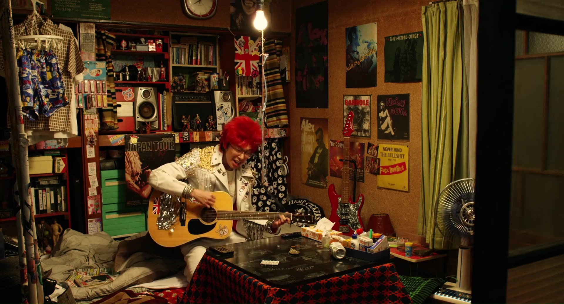 Difficile de savoir comment aborder une nouvelle œuvre de Sono Sion en 2015, tant il semble que le réalisateur, ayant enfin la notoriété qu’il méritait, prend la même voie que celle de Miike, à savoir tourner un nombre de projet incalculable par an, alternant commercial et personnel, et donc forcément, du bon et du moins bon. En tournant plus de six projets en un an, ils ne peuvent pas tous être bons. En 2015 donc, nous avions eu l’intéressant Tag, qui bien qu’inabouti par certains aspects, restait un beau projet, et à côté, la bouffonnerie The Virgin Psychics, adaptation de sa série Minna Esper Dayo (catastrophique), ou encore The Shinjuku Swan, qui ne bénéficie absolument pas d’une bonne réputation (apparemment, son pire film de l’année, produit sans âme et même un peu filmé n’importe comment). Love & Peace lui bénéficie de très bons échos. Et à la manière de Why Don’t You Play in Hell ?, un projet que Sono Sion a dans sa veste depuis plus de 20 ans. Ici, il est question d’un raté rêvant de devenir une star du rock, d’une tortue devenant géante et détruisant Tokyo à la manière de Godzilla, et de jouets ayant la parole façon Toy Story. Un mélange assez étrange mais qui peut le faire après tout. Ce n’est pas comme si le chef d’œuvre de Sono Sion, Love Exposure, ne mélangeait pas déjà les genres et les ruptures de tons. Et pourtant, Love & Peace m’a déçu. Il reste clairement un film sympathique, mais dont les quelques changements de tons nous font souvent regretter la partie précédente du métrage.