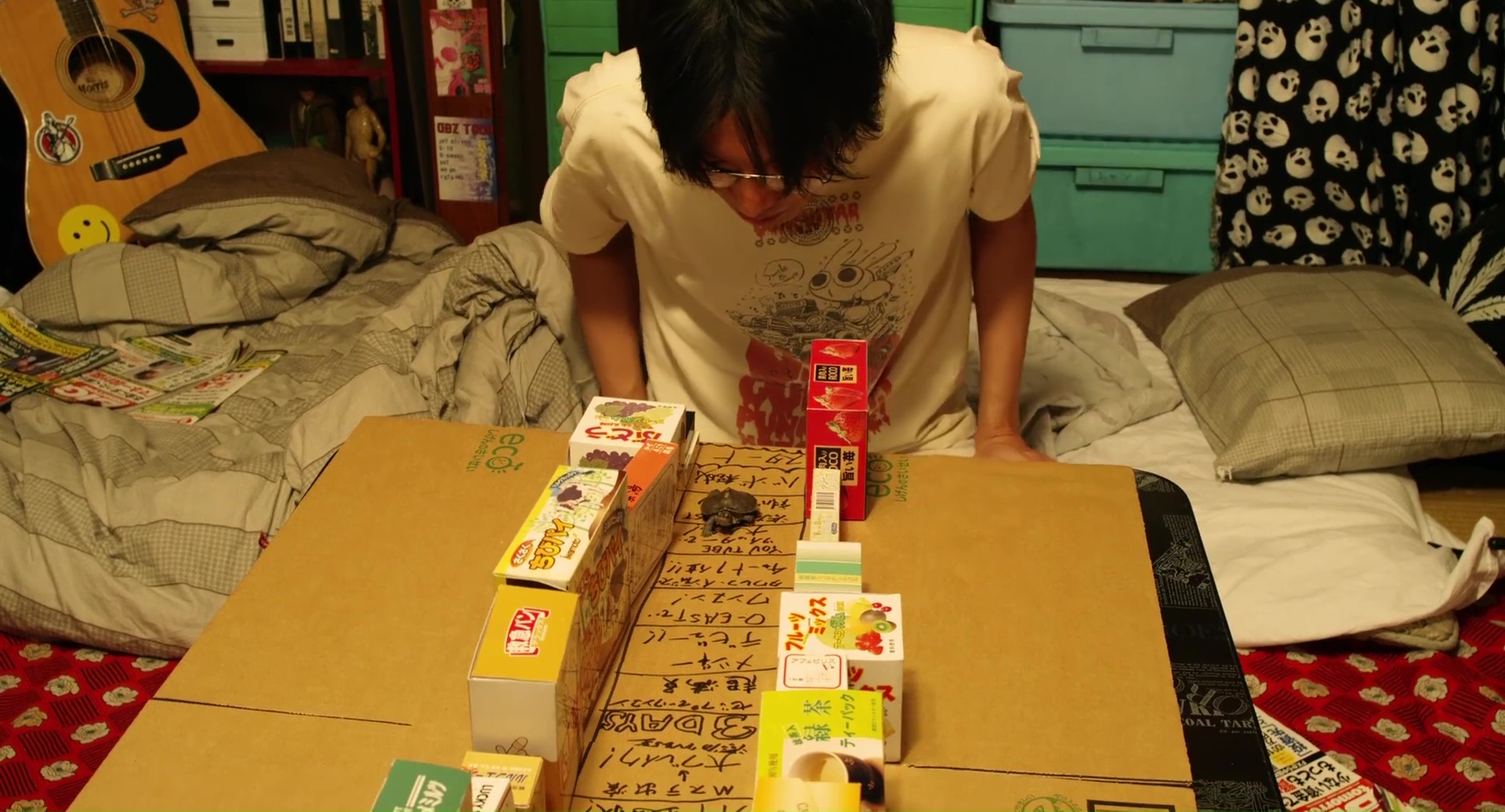 Car la première demi-heure, contre toute attente, est excellente, et très encrée dans le cinéma de son auteur. On y suit un looser, joué par Hasegawa Hiroki, tout en surjeu comme dans Why Don’t You Play in Hell ? Timide, faisant des grimaces, amoureux de sa collègue, maltraité par les autres, rêvant de créer un groupe de rock pour conquérir le stade, il a tout du looser en marge de la société comme Sono Sion les aime, et il s’avère plutôt attachant. Il se trouve rapidement son meilleur ami en achetant une tortue, et va l’appeler Pikadon, ce qui sera un des quiproquo du film, puisque Pikadon représente la bombe atomique. Cette tortue va lui donner espoir, il va l’amener partout avec lui. Il fera même des jeux de plateau avec sa tortue. Sono Sion n’en fait pourtant pas trop (Hasegawa Hiroki s’en charge), son métrage est amusant, son personnage attachant, la tortue toute mignonne. Mais rapidement, à cause des moqueries de ses collègues, il se débarrasse de la statue et va vite mal le vivre. Mais grâce à sa tortue, recueillie par un grand père qui donne la parole aux jouets et animaux non désirés par leurs maîtres, notre héros va petit à petit obtenir ce qu’il veut. Car la tortue tout mignonne va pouvoir exaucer ces vœux, et grandir à chaque vœu. Là on se dit que ça va être du bon, 2 heures de bonheur si le métrage continue dans cette direction, drôle et tout.